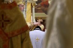 A mai evangéliumi szakasz kapcsán két szempontra hívnám fel a figyelmet. Először is arra, hogy az evangélium sohasem egymás mellé tett epizódok véletlenszerű elmesélése, hanem a mi Urunk Jézus Krisztus megtestesülésének, szenvedésének, halálának és feltámadásának egyetlen nagy katekézise. Az imént elhangzott szakasz egy másik, az evangélium kezdetén található eseményre utal: egy este, illetve éjszaka Jézus megszületik, emberré lesz, gyakorlatilag egyedül. Mária van jelen, az Istenszülő, aki az Egyház előképeként a csendben szemléli a titkot, és József, aki a törékeny és tudatlan emberiség képviselőjeként a kételkedésben van jelen.