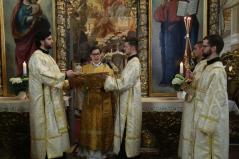 A mi Urunk Jézus Krisztus feltámadása gyűjtött bennünket össze, hogy énekkel dicsőítsük, hogy hálát adjunk, hogy hallgassuk az ő Igéjét, hogy megünnepeljük Szent Titkait. Ezen felül a mostani Szent Liturgián Grunda Dávid diakónus pappá szentelődik majd. A szentírási olvasmányok során két szakasszal találkoztunk: elsőként az Apostolok cselekedeteiből, mely leírja a hét diakónus kiválasztását, a közösséget szolgáló hét férfiét, akik szolgálatukkal a testvéri szeretet munkatársaivá váltak a keresztény hívők között. Majd Márk evangéliumából hallottunk egy szakaszt, amely Arimateai József alakját tárja elénk, az előkelő Józsefét, akinek Jézus testének eltemetésére van gondja, és a Kenethozó asszonyokét, akik vasárnap sietnek, hogy illatos szerekkel kenjék be Jézus testét.