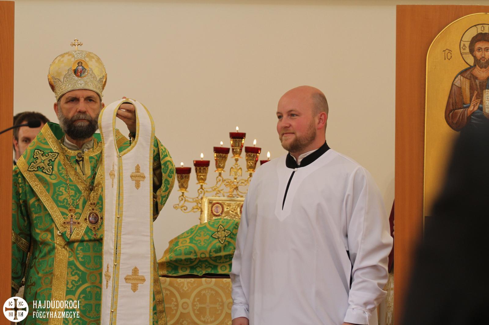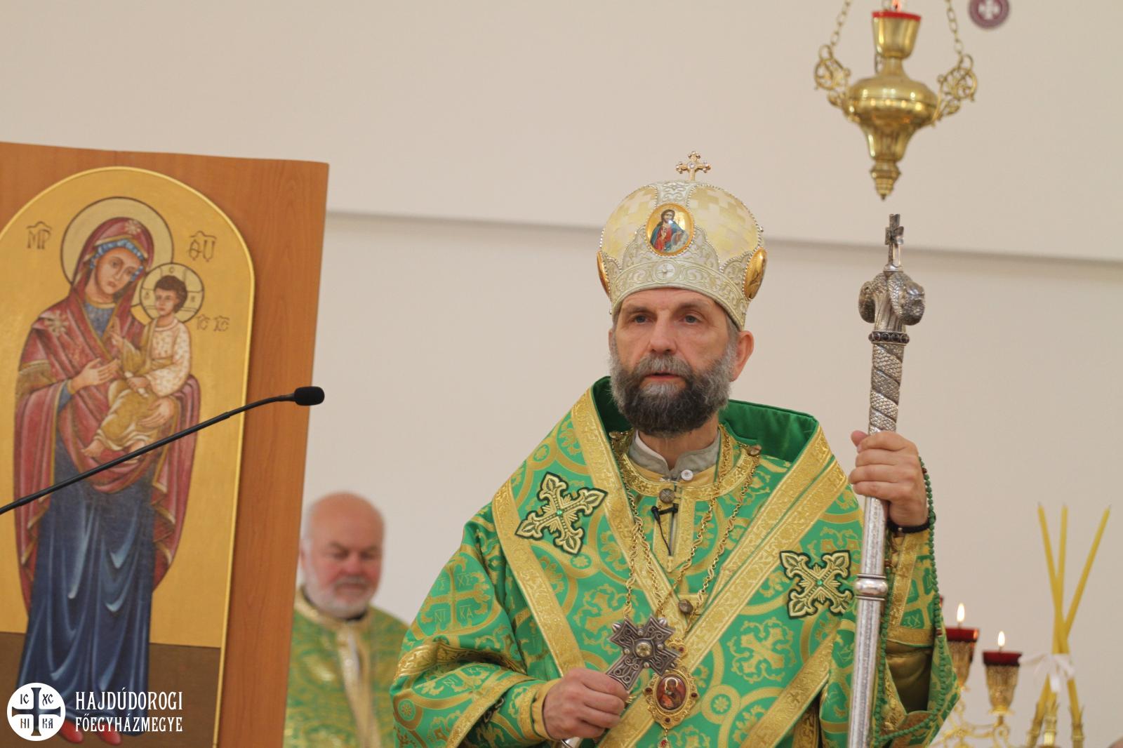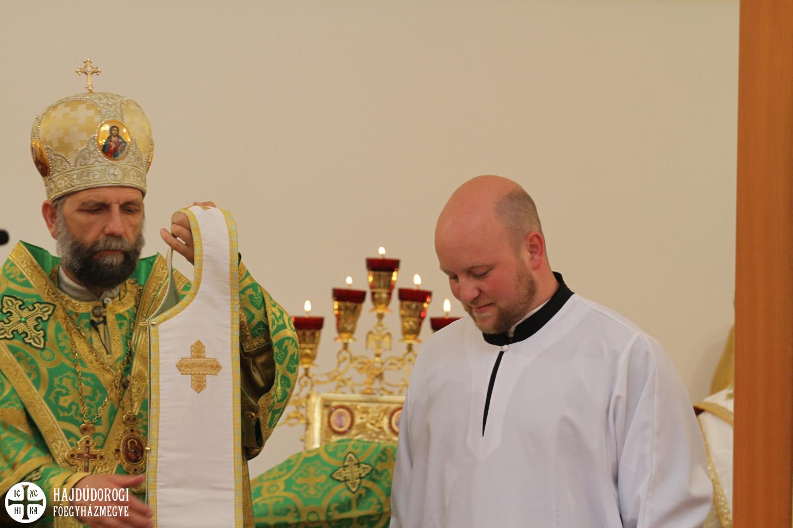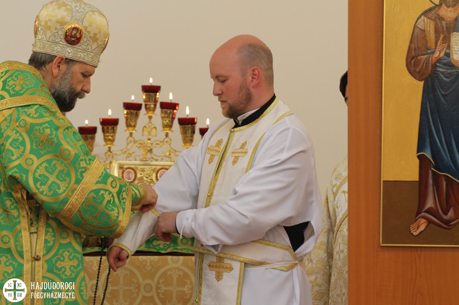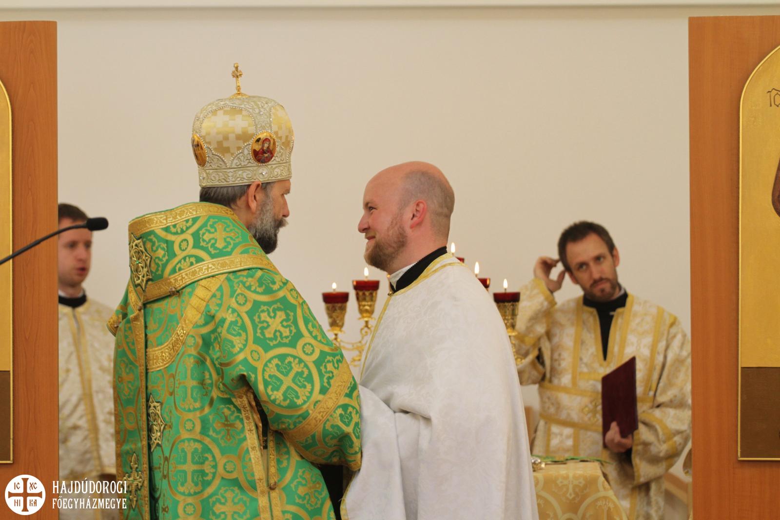 Kocsis Fülöp érsek-metropolita atya prédikációját annak a hangsúlyozásával kezdte, hogy amikor az isteni Szent Liturgiában valakit áldozópappá szentelünk, elsősorban az Isten átalakító erejéről kell beszélnünk, gondolkoznunk. A Lélek átformál bennünket, ahogy annak idején tudatlan halászemberekből hittudósokat és igehirdetőket formált.