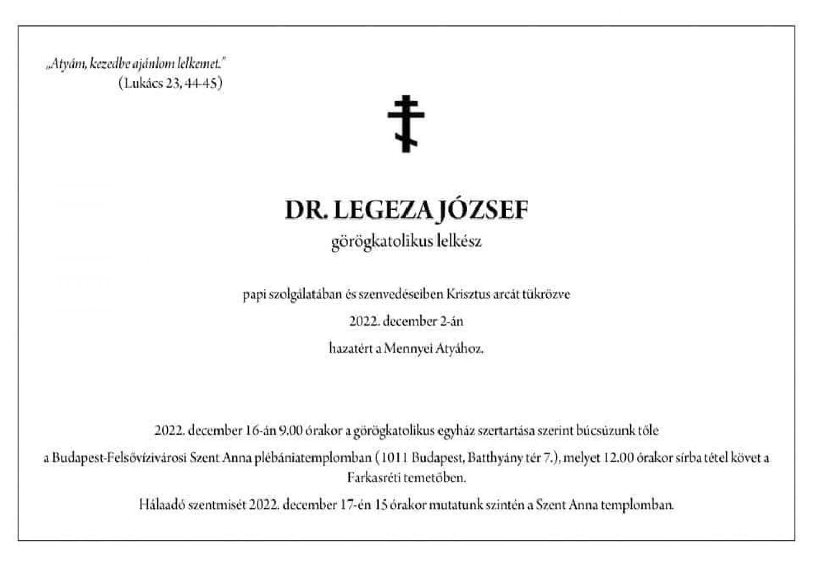Pénteken vesznek végső búcsút Legeza Jozsó atyától