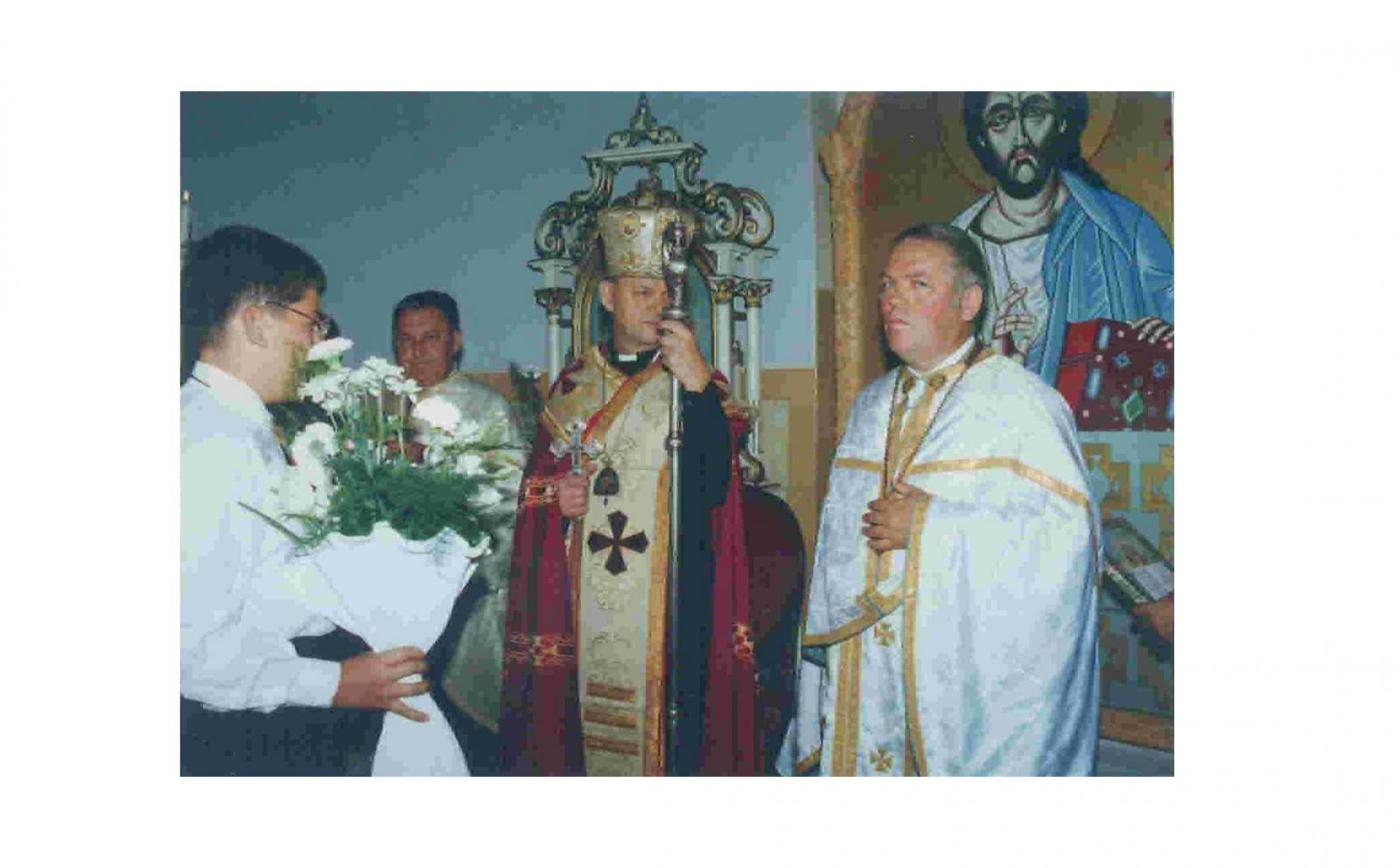 Énelőttem csak alkalomszerűen jártak ki Esztergomba a budai atyák, így Bacsóka kanonok úr, és nem volt templomunk. Először a Szegényház téri kápolnában, majd a kórház-kápolnában végeztük a Liturgiát, de volt egy pap-családból származó neves orvos itt, dr. Magyarsóki Ferenc, aki korábban városi képviselő volt. Az ő révén 2000 elején ingyen és bérmentve megkaptuk a várostól a volt szerb templomot és a hozzá tartozó telket. A vallási turizmus pályázatain Latorczai János akkori miniszter segítségével sikerült támogatást szereznünk, és elkezdődhetettek a munkálatok. A paplak teljesen romos volt, le kellett bontani, és a templom is siralmas állapotban volt. Közben kiderült, hogy a parókia olyan romokra épült, amelyek a Szent István korabeli Johannita kolostor maradványai. Ezeket bele foglaltuk a közösségi ház alsó szintjébe. Így a keleti egyház jelenléte szinte egész évezredet fog át Esztergomban.