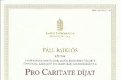 Pro Caritae díjban részesült Páll Miklós atya is, a hátrányos helyzetben lévők érdekében végzett önzetlen karitatív tevékenysége elismeréseként. Miklós atya hét éve tevékenykedik karitászigazgatóként a Miskolci Egyházmegyében, a tolcsvai parókiai szolgálatok mellett.