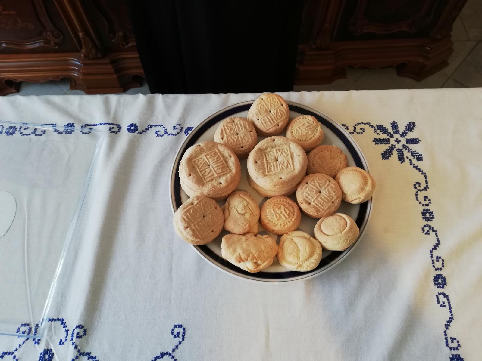 Amikor megkelt a tészta, Fülöp atya elnyújtotta azt, majd közösen kiszaggattuk a pogácsákat belőle, amelyeket egymásra illesztettünk. Rányomtuk a pecséteket, tepsibe raktuk és az erre tartogatott fapálcával megszúrtuk, közben hangosan mondtuk: „Az Atya, a Fiú és a Szentlélek nevében. Amen”. Sülés közben ismét jót beszélgettünk érsek atyával, a kész proszforákból pedig mindenki kapott is egyet ajándékba, amit haza vihettünk.