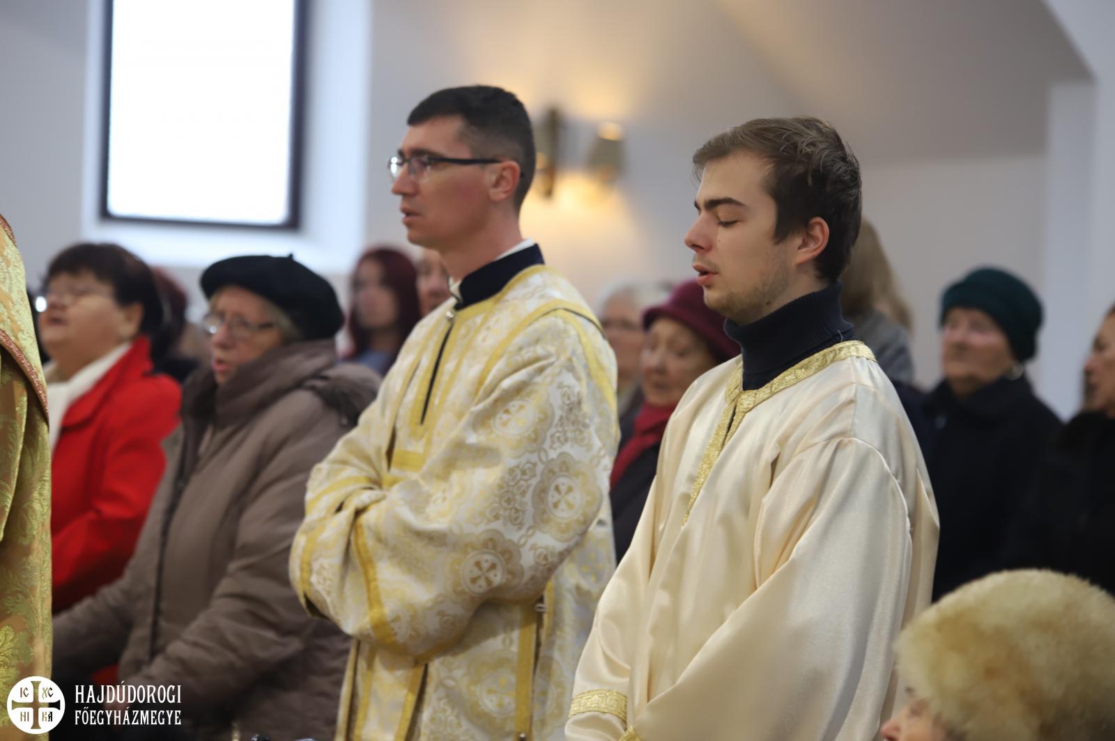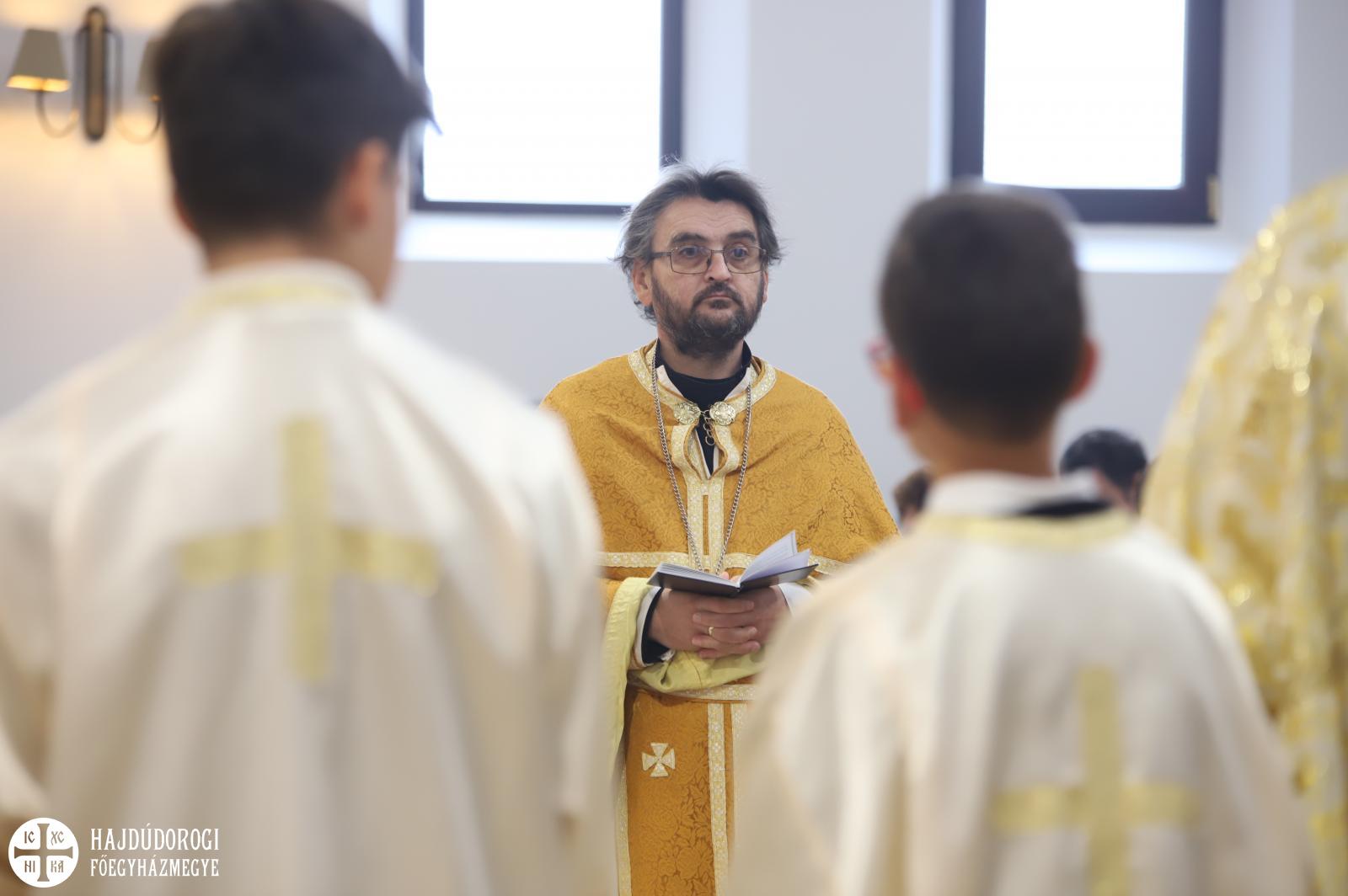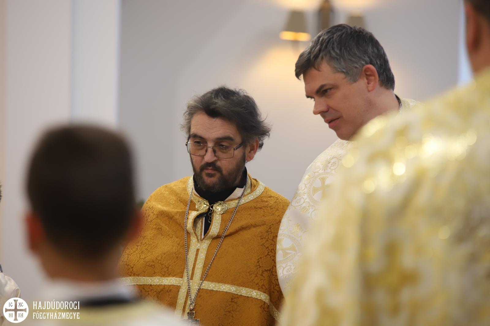 A Szent Liturgia énekei ezen a vasárnapon talán most még szebben csengtek, hiszen ezen a hétvégén tartották a kántorok lelki gyakorlatát Debrecenben. Így ők is részt vettek a szertartáson, ami méltó zárása volt az ő találkozásuknak is. Amint az Evangéliumban hallhattuk: „Testvéreim! Erősödjetek meg az Úrban, az ő hatalmas erejében! Öltsétek magatokra Isten fegyverzetét, hogy megállhassatok az ördög mesterkedéseivel szemben!” Ef 6,10-17