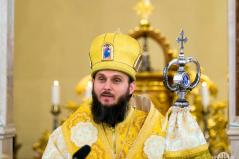 Az ezután következő homíliát Kocsis Fülöp metropolita tartotta, aki gondolatait a mai ünnepre, Urunk mennybemenetelére utaló zsoltárvers köré építette: „Emelkedj föl az egekbe Isten, és a Te dicsőséged az egész földön!” Tanításában arra hívta fel a figyelmet, hogy a tanítványokkal együtt ismerjük fel, hogy Krisztus mennybemenetele „nem távozó emelkedés. Ha az atyával van, akkor velük is van. Mert ők hittek Jézus ígéretében, hogy nem hagyja el őket, velük lesz a világ végezetéig. […] Hittel és bizalommal vártak Jeruzsálemben, amíg be nem teljesedik az Atya ígérete, amit Jézus továbbított nekik: »...amikor leszáll rátok a Szentlélek, erőben részesültök, és tanúságot tesztek majd rólam Jeruzsálemben, meg egész Júdeában és Szamariában, sőt egészen a föld végső határáig«.”