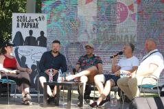 A beszélgetés végén most is szót kaphatott a közönség, ezúttal azonban nem záporoztak a kérdések, szívesebben folytattak inkább a Szólj be a papnak! sátránál személyes beszélgetéseket a résztvevők.