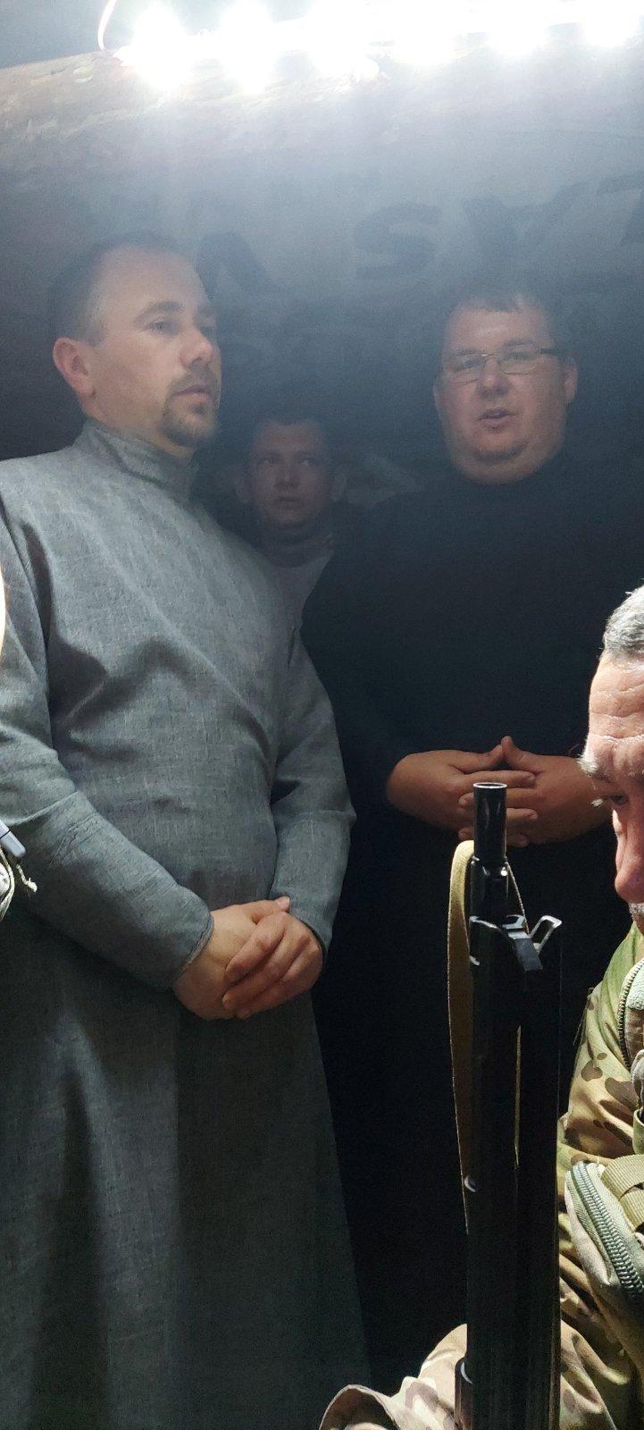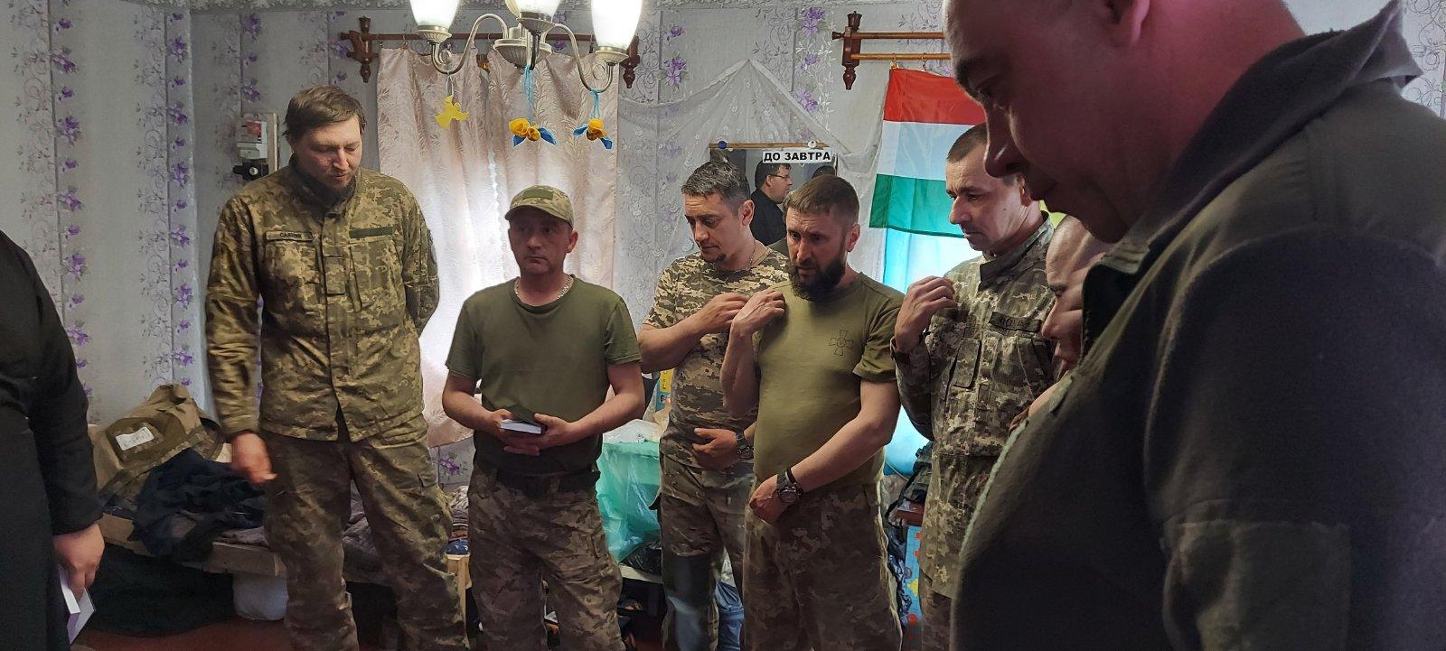 Sz.P.: Luscsák Nílus püspök atya, a Munkácsi Görögkatolikus Egyházmegye apostoli adminisztrátora keresett és kért meg bennünket erre. Egy megkeresés érkezett felé Fegyir Sándor ungvári professzortól, aki a háború kezdete óta önkéntes katonaként szolgál, és nagyon sokat tesz a fronton lévő magyar származású katonákért. Ő szólította meg püspök atyát, hogy nagyon jó lenne, ha olyan lelkészek is ki tudnának menni a katonákhoz, akik beszélik az ukrán és a magyar nyelvet is, hisz a kárpátaljai egységekben, zászlóaljakban elég sok kárpátaljai magyar vagy magyar származású katona is teljesít szolgálatot. És bizony a háború kitörése óta, már tizenöt hónapja, sokan szolgáltak ott, ami lelkileg egy nagyon megterhelő állapot, különösen arra való tekintettel, hogy a területvédelmi zászlóalj egyes szakaszait épp a bahmuti forró pontokról vonták ki, és sajnos veszteségeik is voltak. Elég nehéz körülmények között tudtak csak kijutni az ostromlott városból, és nagy-nagy szükségük volt arra, hogy hazaiakkal találkozzanak.