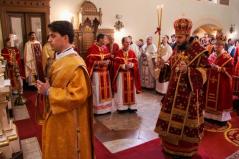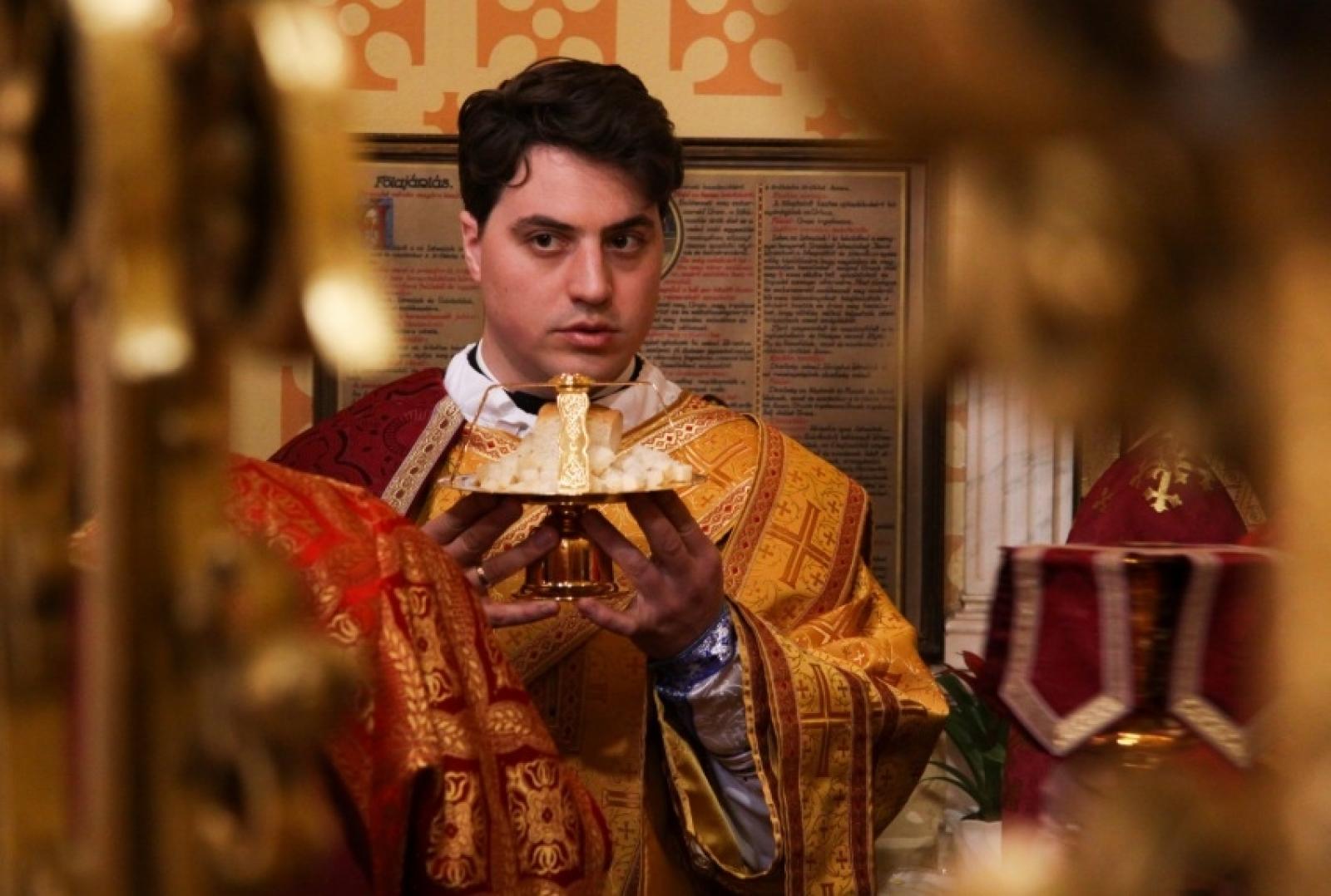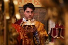 A Szent Liturgiát még diakónusként kezdő Szirmai Máté füstölővel fogadta a szentelésére érkező Szocska Ábel és Keresztes Szilárd püspököket gyerekkora templomában.