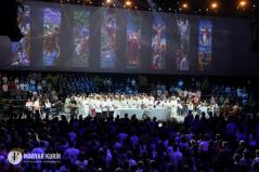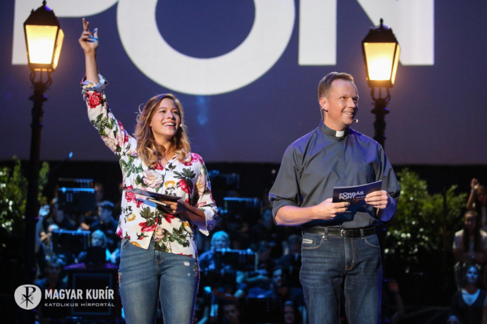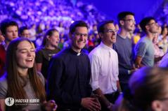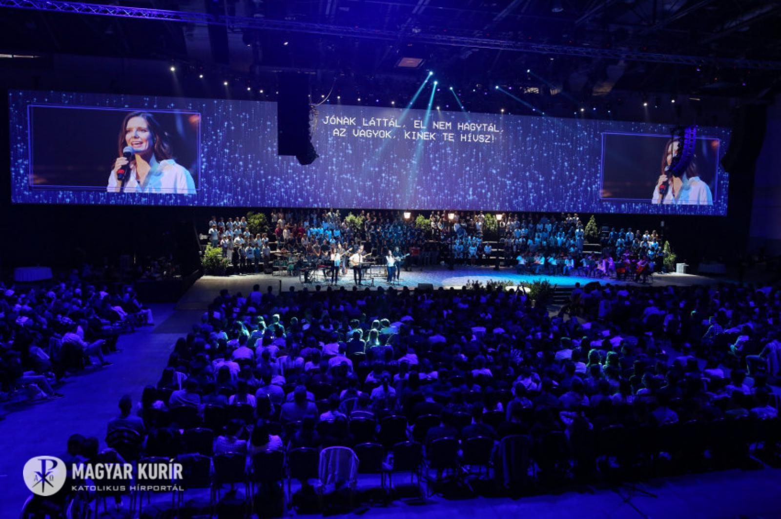 Az alkalomra összeállt csapatot Vízy Márton vezeti. „Jézus mellém állt...” – énekli. A háttérben hatalmas kivetítőn olvasható a dalszöveg, közelképben láthatjuk a zenészeket; a profizmus nyugalmával emelkedik felfelé az égbolt csillagait is idéző videómontázs. Rengeteg a fiatal, közülük néhányan már fel is állnak a székükről, énekelnek. „Áldott legyen az Úr neve” – ennek a dalnak az ereje már jól érződik, egyre többen felpattannak az ülőhelyükről, és akkor Vízi Márton azt mondja: „Szabad felállni, tapsolni, lelkendezni – és szabad nagyon szeretni.”