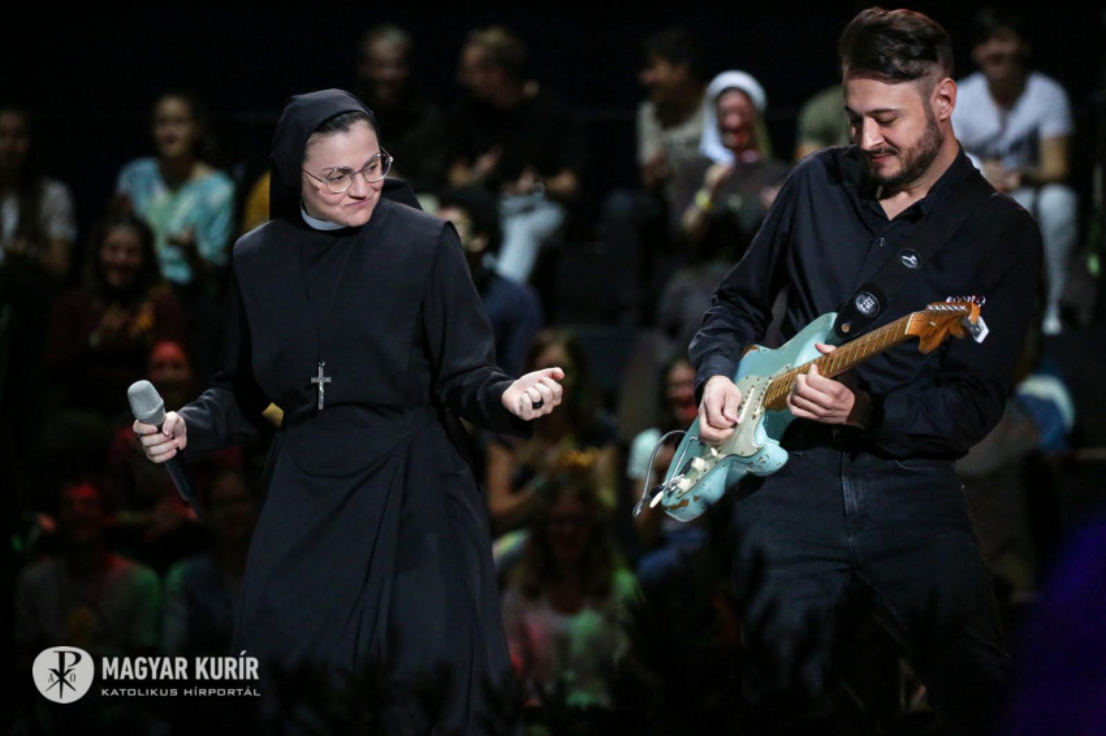 A morálteológus után az este sztárja Cristina nővér következett. A fiatalok kíváncsian várták az olaszországi The Voice-győztes apácát. „Sziasztok” – ez volta az első szava. Sztárallűröktől mentes lénye, komolysága, a habitusban való szenvedélyes éneklése, kicsinysége szerethetővé teszi a jó hangú nővért. „Köszönöm, Jézus, hogy itt vagy!” – ezzel kezdte, majd arról beszélt a fiataloknak, hogy értékesek mind, különlegesek Isten szemében, és hagyják, hogy szeressék őket. Az igazi boldogság apró dolgokban rejlik, azok tesznek naggyá, és a siker nem mindig tesz jót.