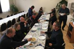 A zarándokházban jó hangulatban fogyasztottuk el ebédünket; egy motoros társaságnak mindig akad megbeszélni valója: megosztásra váró élmények, hasznos tippek a motorok tartására, és persze a tervek, amelyek már a jövő évi szezonra irányulnak.