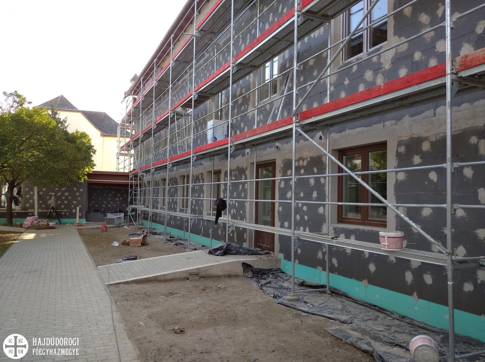 A felújítás eredményeképpen megtörtént az épület külső oldali hőszigetelése, a külső oldali homlokzat utólagos (lábazat) hőszigetelése, az épület lábazati falaira AUSTROTHERM Expert Fix hőszigetelő táblák kerültek elhelyezésre. Elkészült a padlásfödém utólagos hőszigetelése, a külső homlokzati nyílászárókat műanyagra cseréltük. A fűtés korszerűsítése során elbontásra kerültek a hőtermelő berendezések, a fűtési osztó-gyűjtők a szivattyúkkal és elzáró szerelvényekkel együtt, valamint a hőleadók és az elosztó hálózat. Az épületrendszerbe új lapradiátorok termosztatikus szelepfejjel, új elosztóhálózattal kerültek kiépítésre, melyhez az épületrészek számára szükséges hőenergiát kondenzációs fali gázkazánokkal állítjuk elő. A kazánházi gázellátó hálózat is átalakításra került.