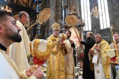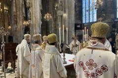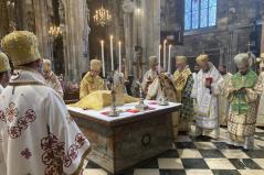 A második nap végeztével a püspök atyák és kísérőik átvonultak a Stephansdomba, hogy közösen végezzenek Szent Liturgiát, melynek magyar vonatkozású különlegessége volt, hogy a liturgia előtt a szertartást végző atyák a máriapócsi kegyképhez járultak, aminek másolatát Fülöp és Atanáz atya az oltárhoz vitte.