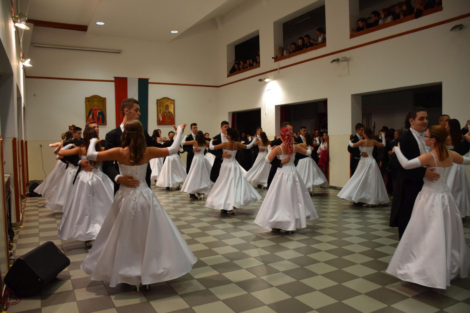 Később a tizenkettedikesek nyitótáncokkal szórakoztatták a vendégeket. Először egy csodálatos művészi koreográfiájú bécsi keringőt, majd charlestont láthattunk. Az állófogadás nívóját a finom vacsora, a vendéglátós szakgimnazisták igényes terítése és felszolgálása illetve a szülők által készített házias sütemények emelték.
