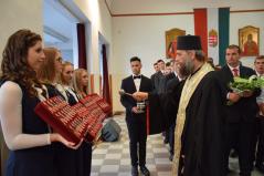 A rendezvény korai időpontját indokolja számunkra, hogy diákjaink figyelmét immár maximálisan a tanulás szolgálatába kell állítanunk, hogy ők is hasonlóan jó eredményeket érjenek el, mint előző évfolyamunk tanulói. Szalagavató ünnepségünk a Hajdúdorogi Görögkatolikus Székesegyházban hálaadó szertartással kezdődött, Kocsis Fülöp érsek-metropolita atya vezetésével, majd a középiskola aulájában folytatódott, ahol Szilágyi Gábor intézményvezető atya köszöntőjében a közösség és a szeretet fontosságára hívta fel a figyelmet, hisz az idei évben a jelmondatunk: „Növekedjetek a szeretetben.”