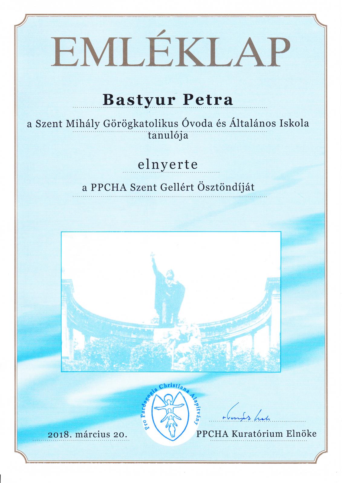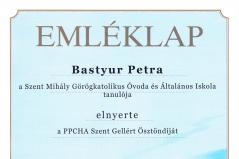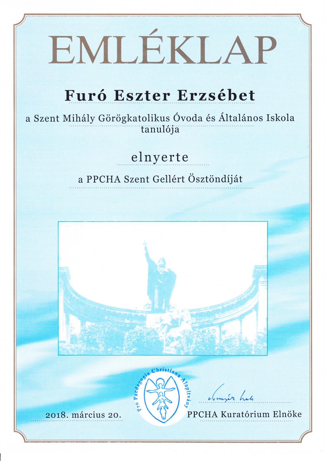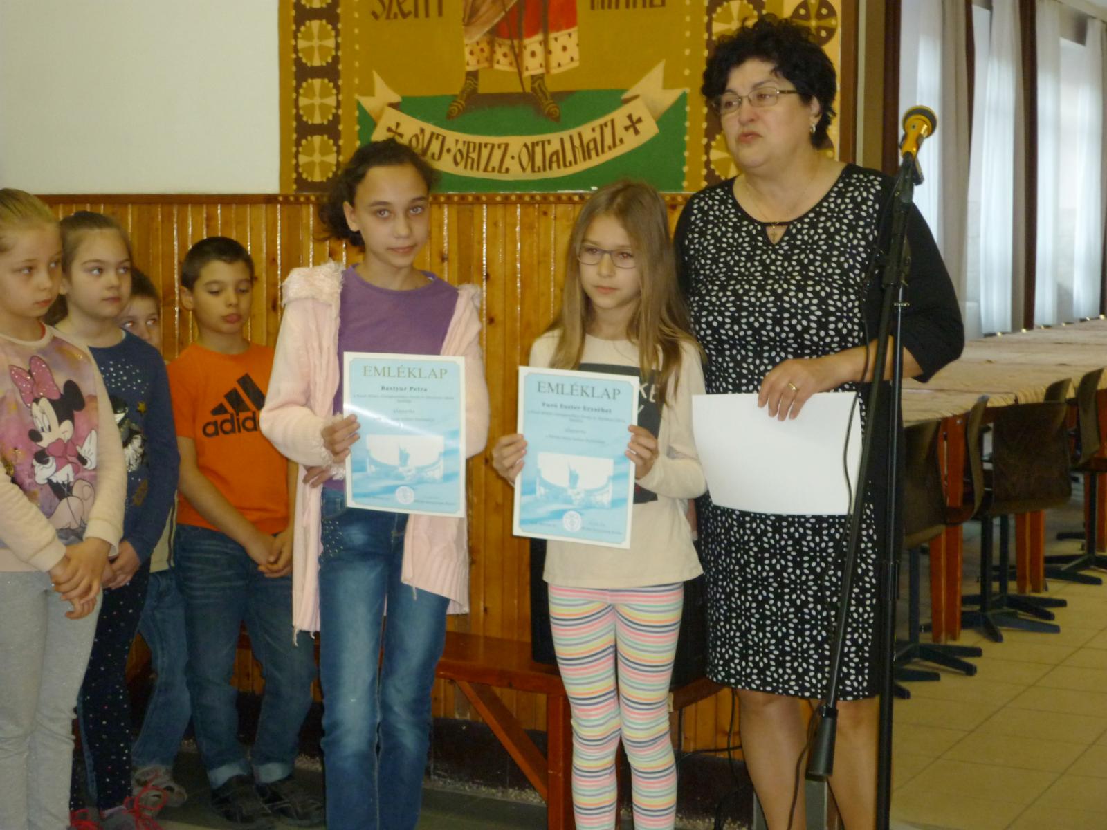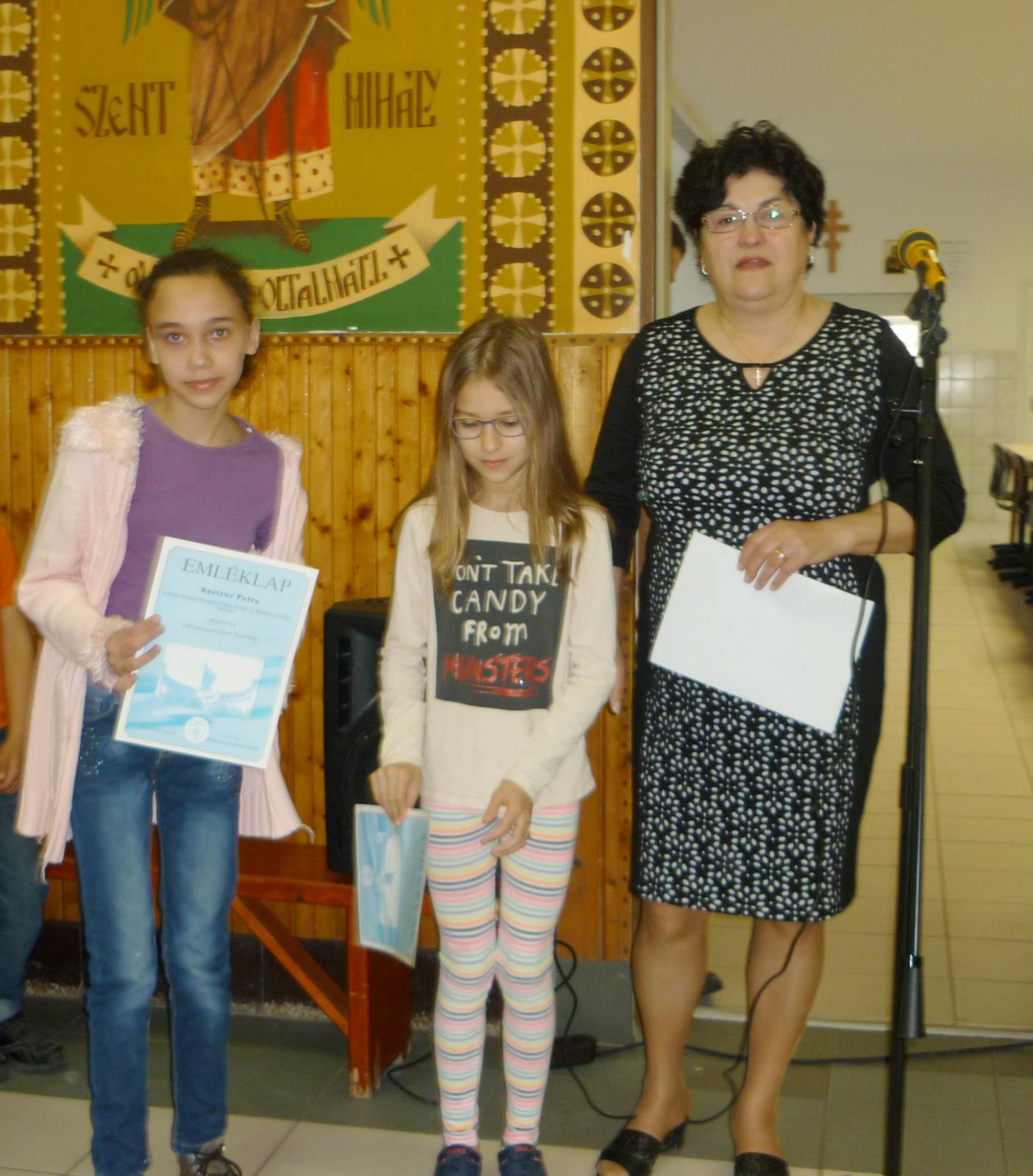 A Pro Paedagogia Christiana Alapítvány kuratóriumának döntése alapján, Furó Eszter Erzsébet, 5. valamint Bastyúr Petra, 6. b osztályos tanulók nyerték el az ösztöndíjat. Ezt a támogatást olyan (katolikus iskolába járó) diákoknak ítélik oda, akik hátrányos helyzetűek, s a tanulásban, közösségi munkában, sportban, vagy egyéb tevékenységben kiemelkedőek. Ők 4 hónapon át, havi 10.000 Ft ösztöndíj támogatást kapnak. Gratulálunk a nyerteseknek, akiknek az oklevelet Gólya Györgyné, intézményvezető adta át az iskola minden tanulójának jelenlétében.