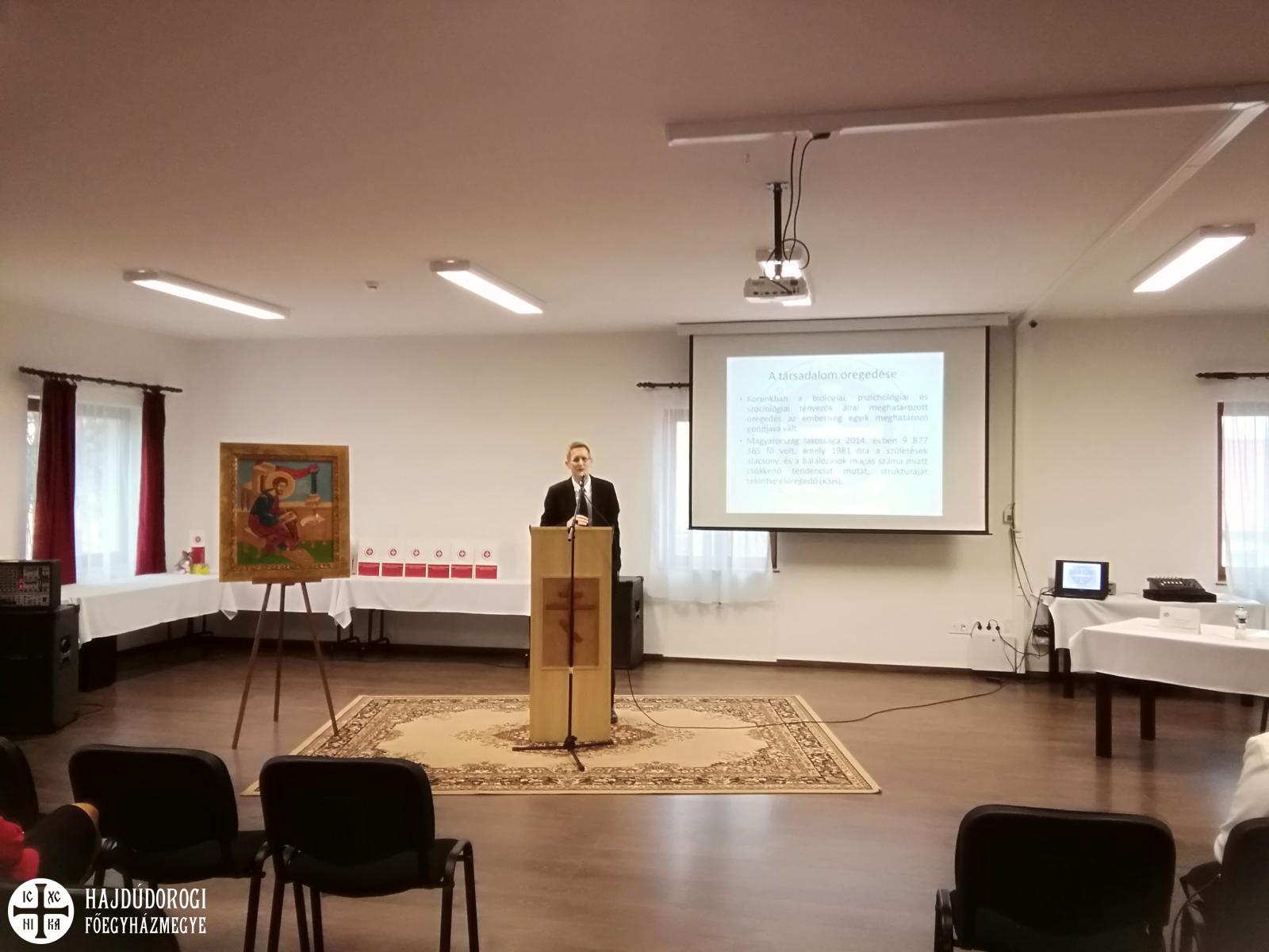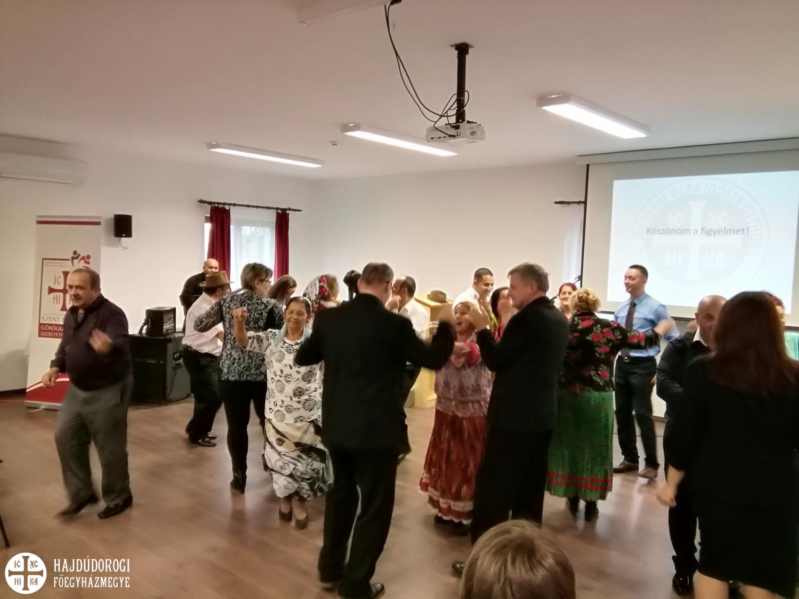 Őt követően Ősz Tibor lelki igazgató tartott elmélkedést, majd néhány képben összefoglalva idézte fel az elmúló év zarándoklatainak és lelki napjainak emlékét. Megismerhettük a Debrecenben megalakult karitatív iroda működését, létrejöttének céljait és a jövőbeni terveit Kissné Suta Marianna Karitatív Irodavezető szavai révén, majd Lőw Gábor a II. János Pál Pápa Idősek Otthona intézményvezetője tartott emlékezetes beszámolót a Máriapócson működő demens részleg kialakításáról és működéséről. A nap fényét emelte a Dudás Miklós Görögkatolikus Két Tanítási Nyelvű Általános Iskola és Alapfokú Művészeti Iskola tanulóinak citera előadása, majd a Hodászi, valamint a Nyírvasvári Görögkatolikus Cigány Egyházközség kórusa mutatkozott be énekeivel, akik meglepetés produkcióként fergeteges hangulatú cigánytáncot adtak elő, bevonva a vállalkozóbb kedvű jelenlévőket is.