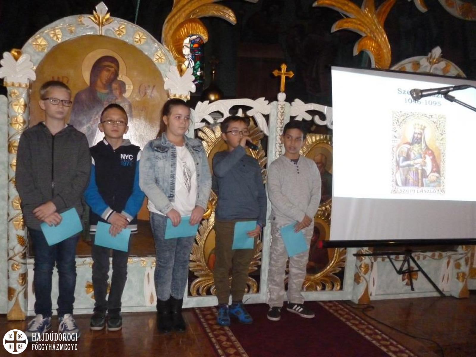 Szerdán „Egyházi nap” volt. A nap liturgiával kezdődött. Délután előadást hallgathattak diákjaink a görögkatolikus templomban Szent László életéről, melyet Bocskai Erzsébet tanárnő tartott diákjaival, majd az alsó és a felső tagozatos gyerekek egyházi vetélkedőkön vettek részt.