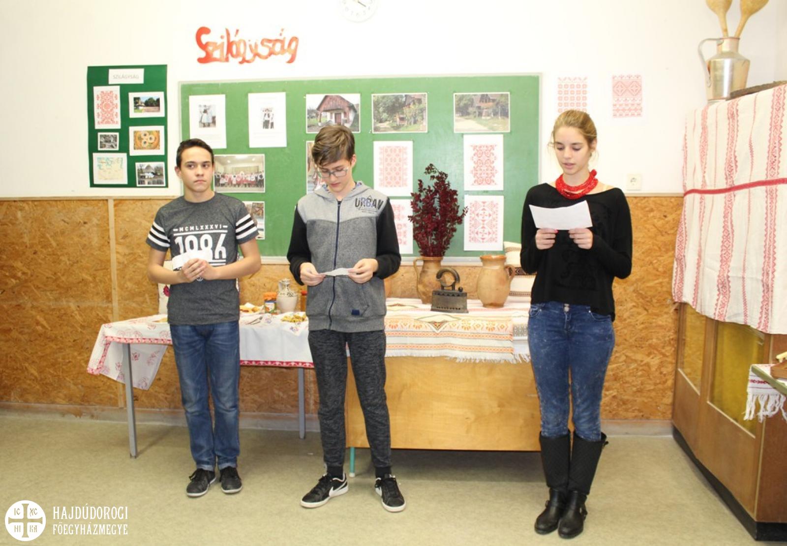 Csütörtök a „Hagyományok napja” volt. A felsőbb évesek Hazánk nagy tájegységeit mutattak be. Kiállító teremmé varázsolták az osztálytermeket, ahol a gyűjtőmunkáikat mutatták be. A tanulók időutazásra hívták a zsűri tagjait, ahol megismerhették a tájegység népviseletét, táncát, az ott élő emberek mindennapi életét, kultúráját. A szülők főzőversenyre nevezhettek, ahol Hazánk tájaira jellemző finomabbnál finomabb ételeket készítettek. Többek között megismerhettük a Cuppogtatott zöldborsós tokányt mütymővel, a Pásztortarhonyát és a cinkét. Kóstolhattuk a Pászka halászlevet, a Tökös-mákos rétest, a Vert perecet, és a Macika csoport szilvás gombócát is. Az ételeket szakavatott zsűri értékelte. Hagyományőrző katonai előadáson, íjászaton, kézműves foglalkozásokon vehettek még részt tanulóink, megnézhették, hogyan készül a sodronying, amit fel is próbálhattak.