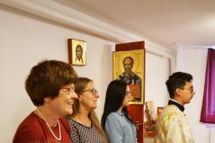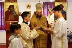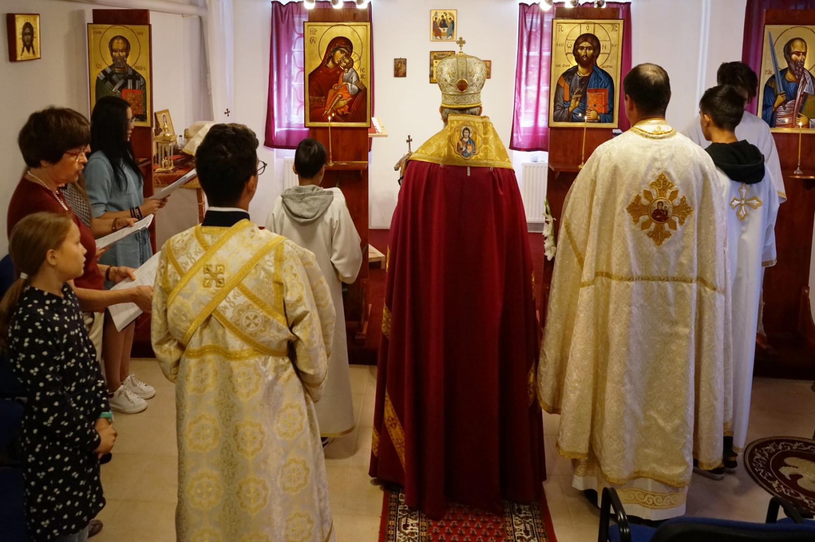 Fülöp metropolita atya érkezett hozzánk, hogy megáldja az elkövetkezendő szertartásaink új helyszínét és elhelyezze az Antimenziont. Utrenyénk és liturgiánk fényét emelte jelenlétével és közreműködésével a közösségi életünk szerves részévé vált püspök, amiért messzemenően hálásak vagyunk az Úrnak és Fülöp atyának is. Prédikációjában párhuzamot vont a menyegzőre - és a mai meghívottak helyzetével. Tanítása tiszta és érthető volt mindenki számára.