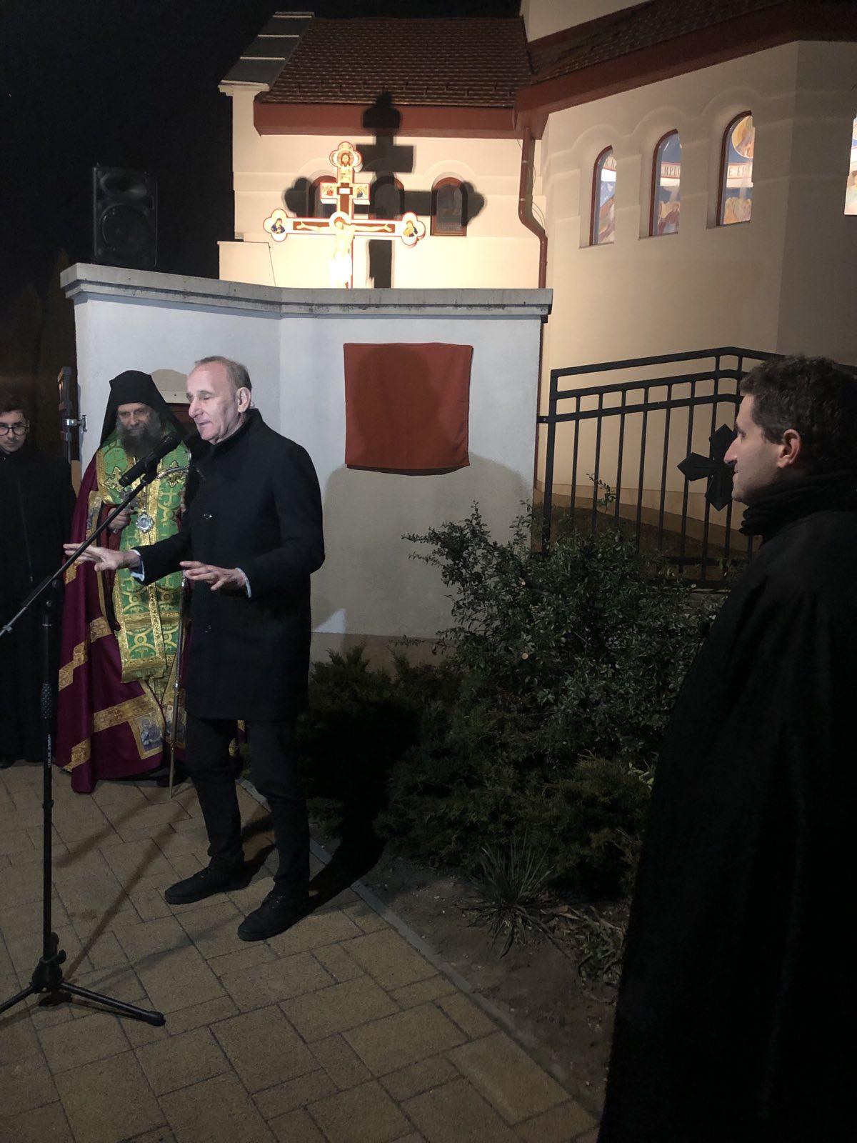 De ennél sokkal fontosabb, amire Fülöp érsek-metropolita atya hívta fel a szentelést megelőző alkonyati istentisztelet végén tartott beszédében a figyelmet. Mégpedig az, hogy ez a keresztelő megváltoztatja nemcsak a teret, hanem a közösséget és a várost is. Ugyanúgy válik szentté az imádság által a tér is, mint amikor vízkeresztkor a Teremtő belépett az anyagba, a folyóba, ami ezáltal megszentelődött, és kegyelemközvetítővé vált.