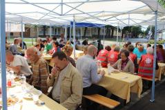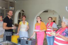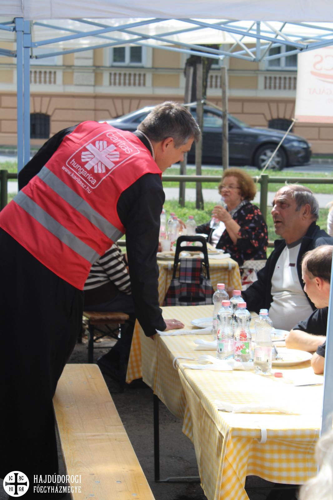 Kétszáz adag étellel és terített asztalokkal várták a vendégeket. Az ebédhez Kocsis Fülöp metropolita atya is csatlakozott, aki úgy véli, a közös étkezés az embert még közelebb viszi az Istenhez.