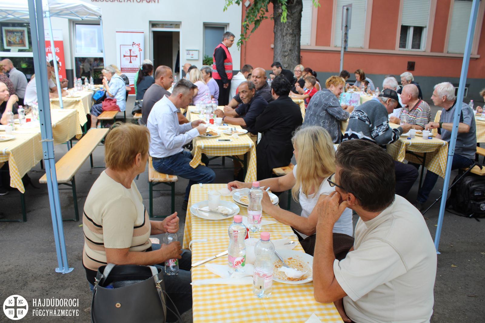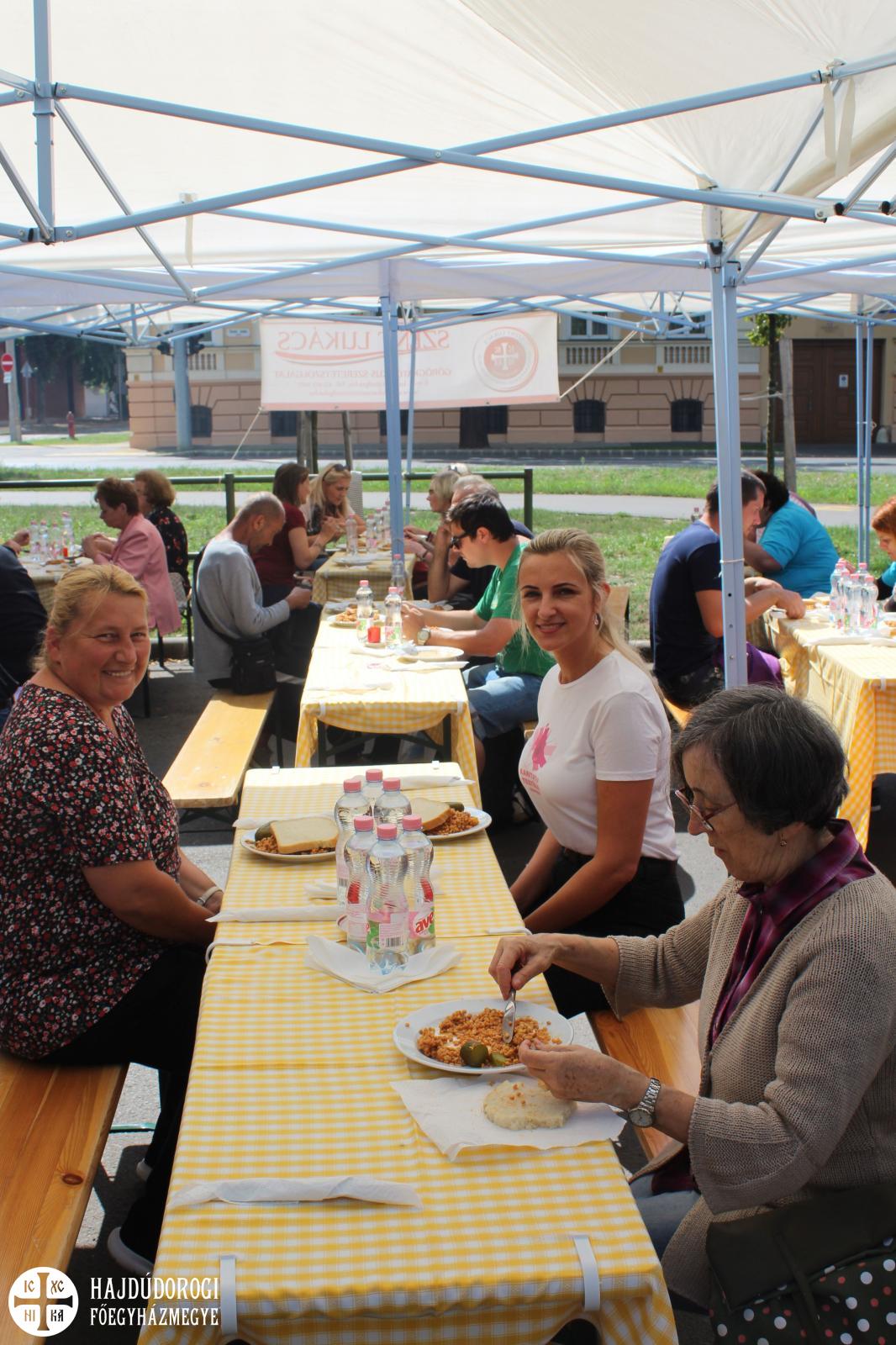 Tarhonyás hús, uborka és kenyér is került a tányérokra szombat délben az Attila téren. Az Eucharisztikus Kongresszus felhívásához kapcsolódva várta a Hajdúdorogi Főegyházmegye fenntartásában működő Szent Lukács Görögkatolikus Szeretetszolgálat a rászorulókat.