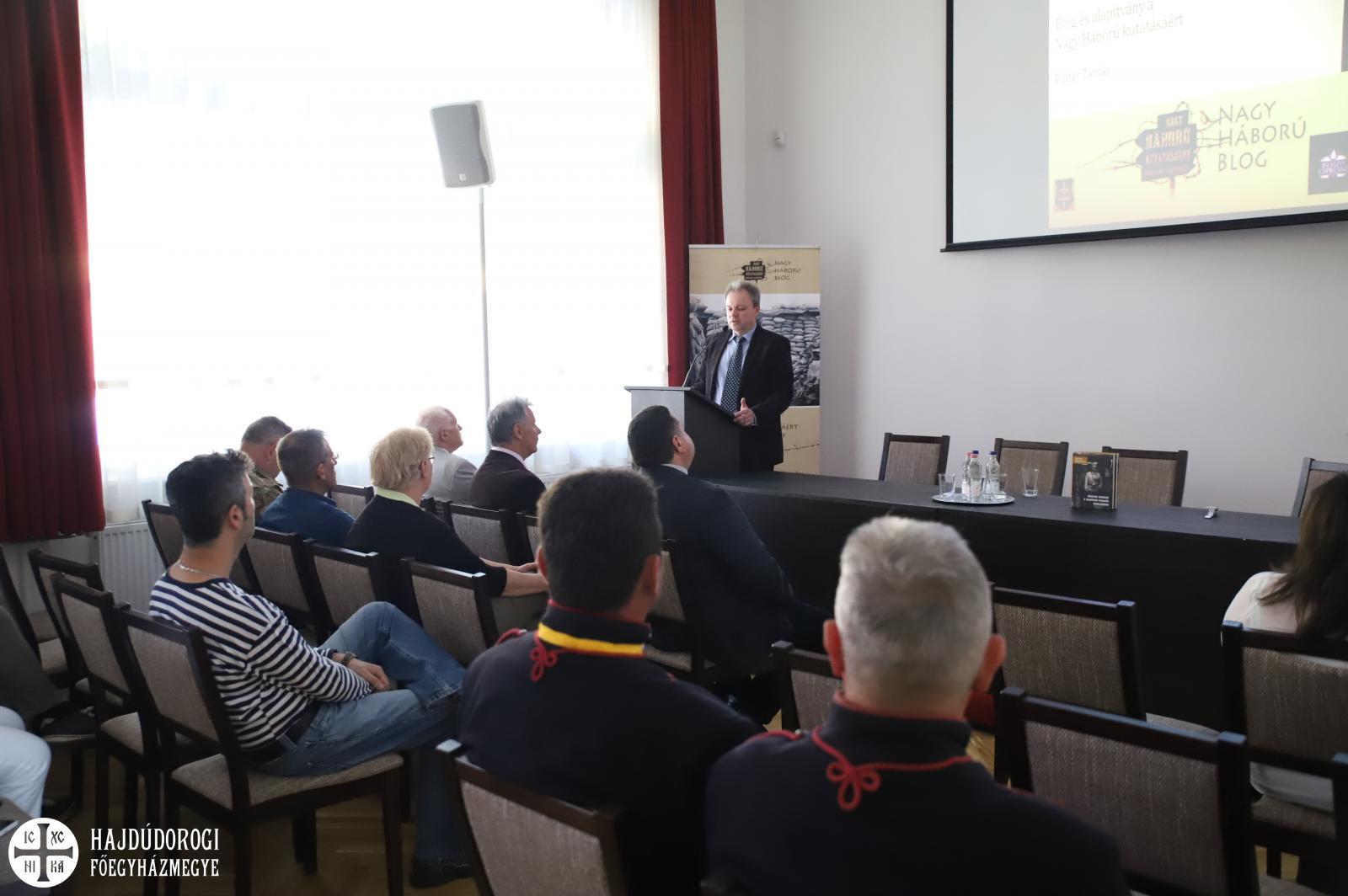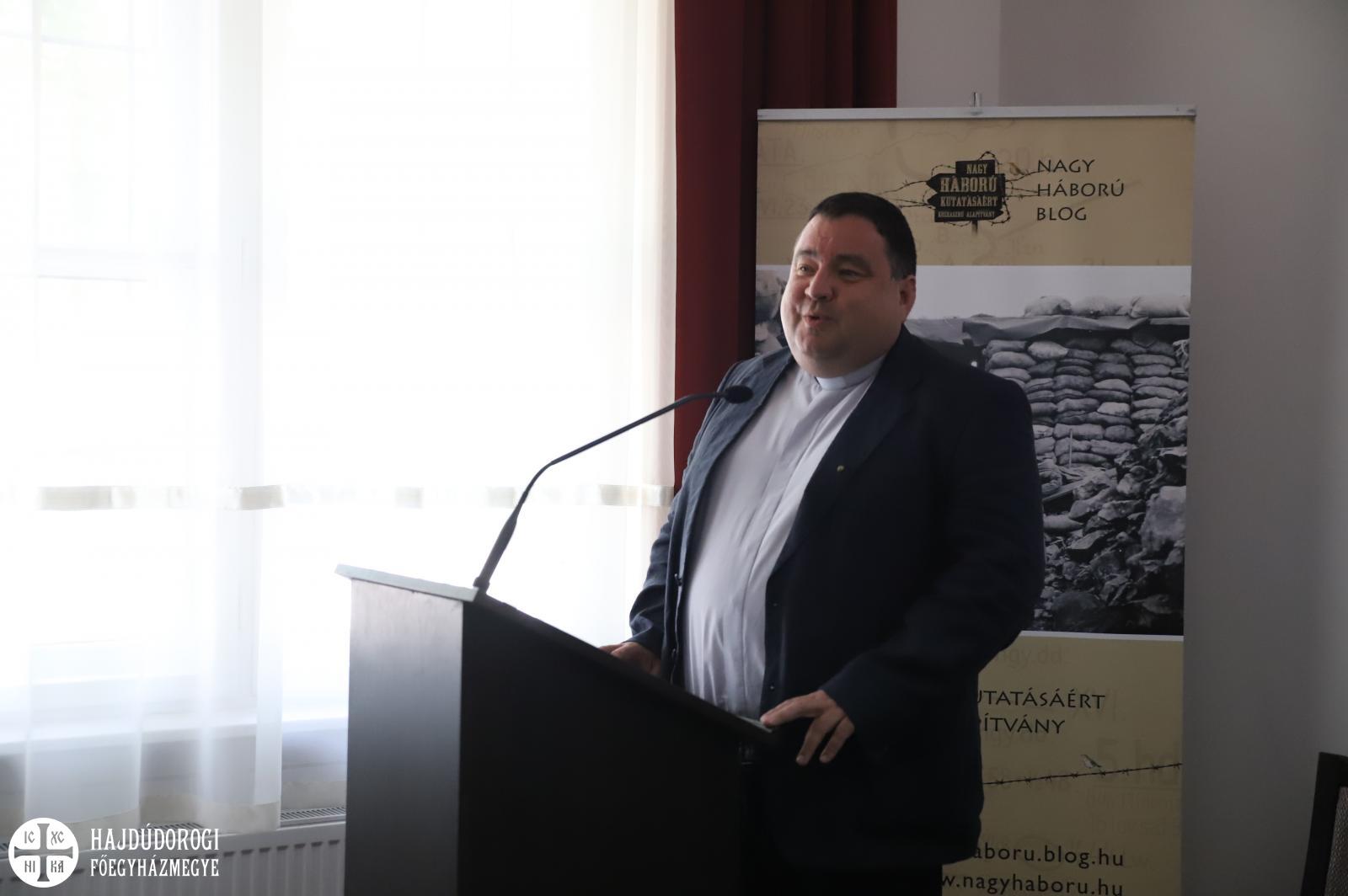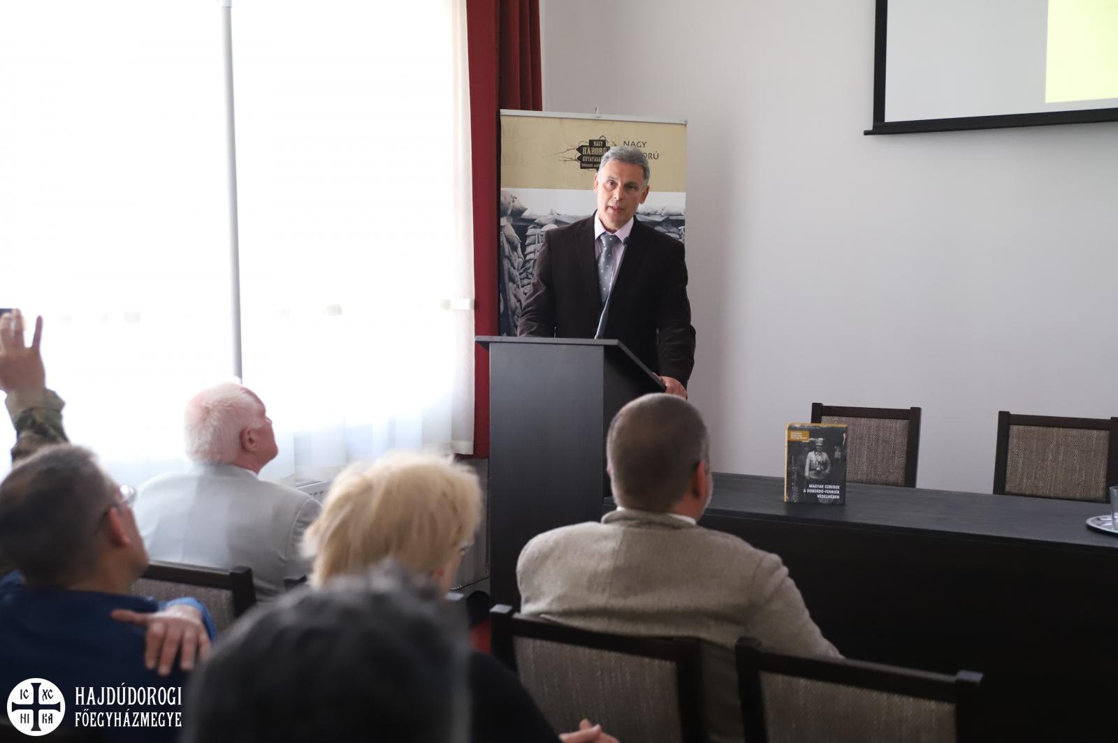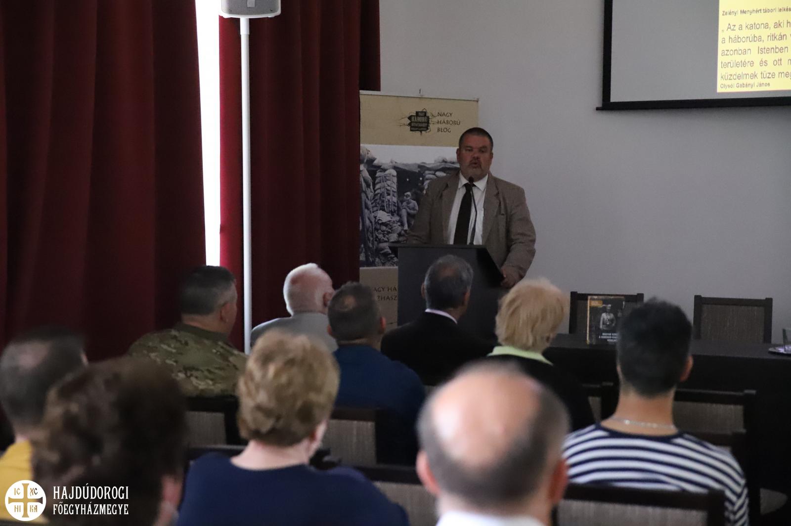 A Pintér Tamás−Rózsafi János−Stencinger Norbert szerzőhármas által összeállított kötet 2009-ben jelent meg először majd 2017-ben a Nagy Háború Kutatásáért Közhasznú Alapítvány gondozásában újra kiadták. A Nagy Háború centenáriumának záróévében végre Debrecen is megismerkedhet a szerzőkkel és a kötettel – mondta az esemény felvezetéseként Topor István helytörténész, aki Papp Miklósnak, a nyíradonyi egyházközség parókusának és Lukács Imre irodavezetőnek is köszönetet mondott azért, hogy a könyv bemutatásának otthont adott az Érseki Hivatal.