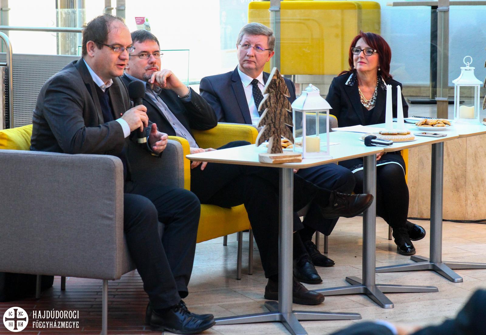 Bódor Edit, a Főnix Rendezvényszervező Kft. ügyvezetője ismertette a programokat: november 27-én, vasárnap 16.30-tól a Debreceni Református Kollégium Általános Iskolájának adventi istentisztelete kezdődik a Nagytemplomban, igét hirdet dr. Fekete Károly református püspök. 17.00 órától a Régi Városházától indulnak az énekes hagyományőrzők, megidézik a pásztorok karácsonyvárását, vonulásukat a Debrecen Helyőrségi Zenekar kíséri.