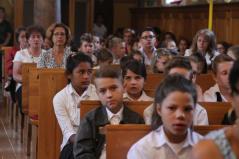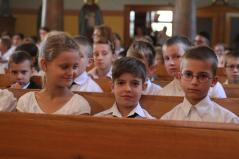 Az elmúlt egy hónapban sokat dolgoztunk azért, hogy jól tudjuk indítani az új tanévet. És nem véletlenül a templomban kezdjük ezt el. Hiszen az Istennel jó kezdeni mindent. Vele érdemes kezdeni mindent. Nem véletlenül választottuk ezt a jelmondatot is iskolánknak: önmagunkat, egymást s egész életünket Krisztus Istenünknek ajánljuk! Hiszen kinek a kezébe is tehetnénk le az életünket, ha nem az Istennek? Bízom benne, hogy egy nagyon szép és sikeres esztendőt fogunk eltölteni együtt!”– zárta sorait az új intézményvezető, aki a szertartás végén egy kézfogással üdvözölte az első osztályosokat.