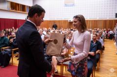 A laudáció (elolvashatja ITT) után a díjazott, Puskás Bernadett köszönetét fejezte ki az elismerésért, külön kiemelve családja támogatását, valamint személyes élettörténetén keresztül mesélt a közönségnek tudományos pályájának elindulásáról is. A jövő generációjának üzenve elmondta, hogy tapasztalata szerint csak a gyökerek kutatásával lehet megélni a jelent, és ez által lehetséges a jövőben építkezni is!