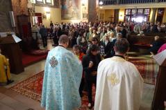 A Szent Liturgia végén körmenetet tartottak, majd következett a miroválás és az agapé. Ezúton is nagyon köszönjük a lelkes híveknek, a Márkó, a Kujbus, a Komáromi és a Mátyás családnak is az önzetlen segítségét!