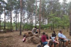 Zsuzsi vonattal utaztunk a helyszínre. Vártuk, hogy elinduljunk, hiszen már az odautat is együtt tettük meg, de a megérkezésnek még jobban örültünk. Elfoglaltuk a szállást, utána jöhetett a játék a tábor indítása gyanánt. Sok-sok élmény és felfedezés várt ránk a hét folyamán. Hallhattunk a cserkészetről egy kisebb előadást, utána mutattak néhány játékot, amiket a hét további részében is szívesen játszottunk.