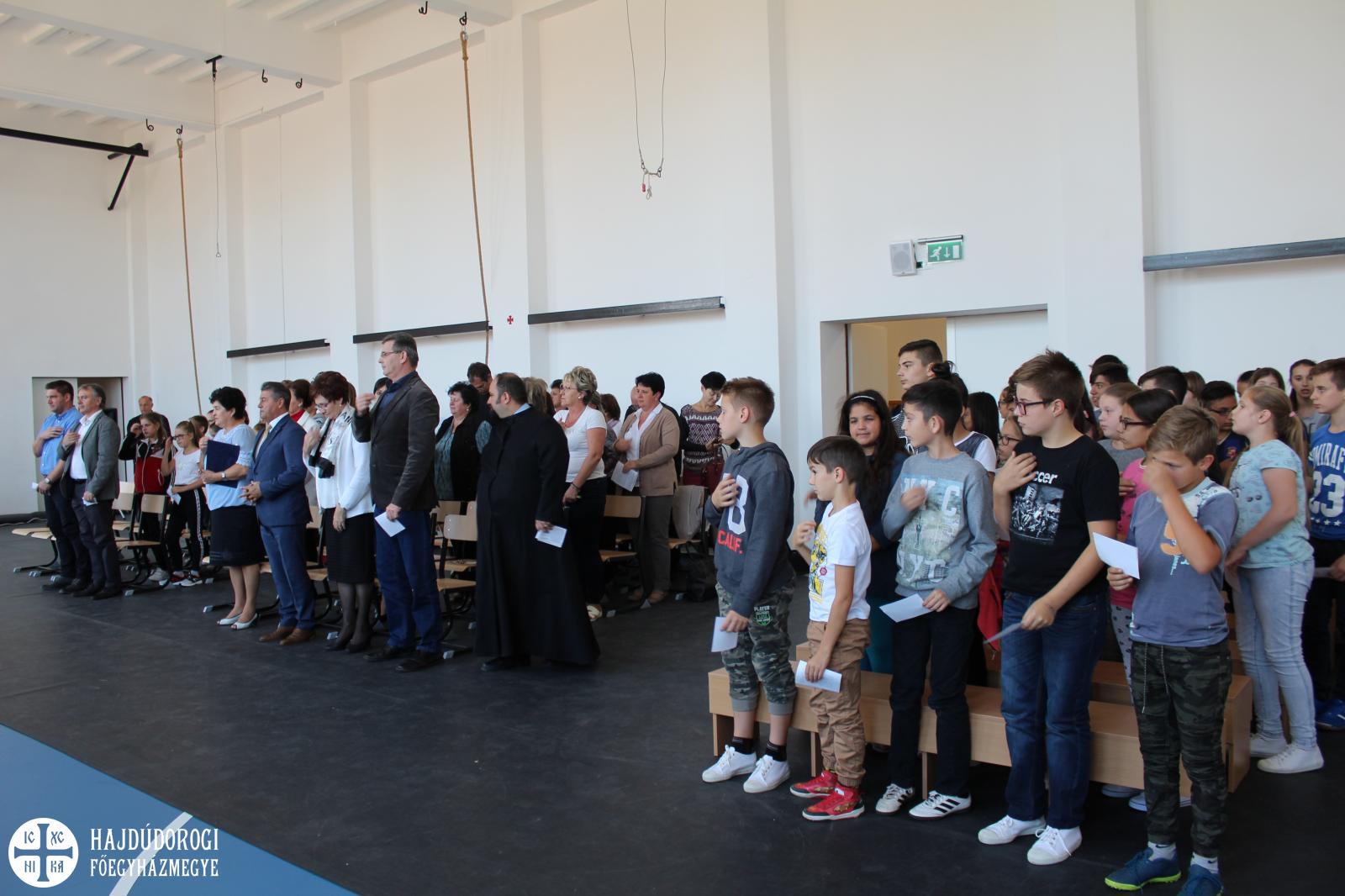 Igazgatónő köszöntője után Tasó László országgyűlési képviselő osztotta meg gondolatatit, emlékeit a régi tornateremhez kapcsolódva. Örömmel fogadta, hogy gyermekeink egy megújult létesítményben sportolhatnak, ahol a lelki feltöltődés mellett testben is erősödhetnek. Sikereket, eredményes munkát kívánt a pedagógusoknak, élményeket, küzdeni akarást, összetartást a diákoknak, akik boldogan vették birtokukba ezt a megszentelt helyet.