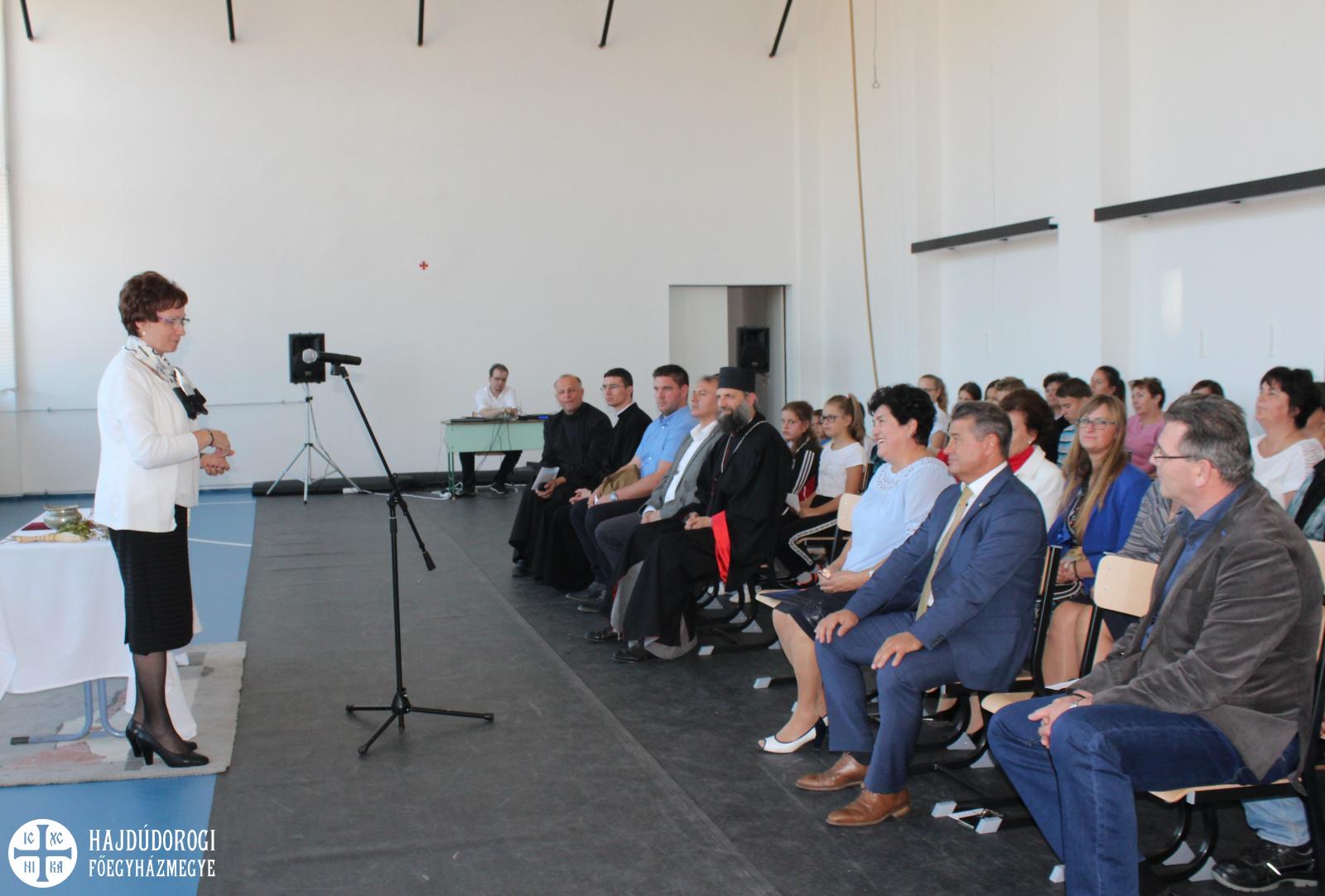 Ezután Kondásné Erdei Mária, Nyíradony polgármestere szólt a megjelentekhez. Örömét fejezte ki, hogy intézményünk, így a tornaterem ajtaja is, nem csak az intézmény diákjainak, hanem a város más sportolni vágyó tagjai számára is nyitva áll.