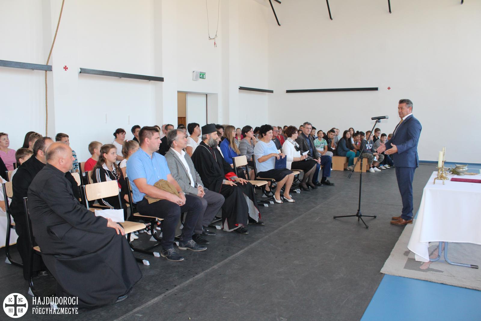 A szertartás után rövid ünnepség következett. Először Gólya Györgyné intézményvezető köszöntötte a vendégeket, munkatársakat és a gyerekeket. A családias hangulatú rendezvényen megjelent Tasó László a térség országgyűlési képviselője, Kondásné Erdei Mária, Nyíradony város polgármestere, Sztancs Tibor alpolgármester, Verdes Jánosné, a Kormányhivatal vezetője, Mezei-Czifra Bernadett, a város jegyzője. Az ünnepségen részt vettek a kivitelező Euro Campus részéről Csepe Lászó ügyvezető igazgató, valamint Csépány Gergely.