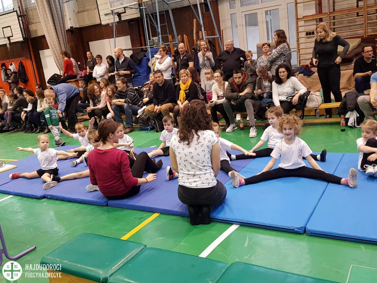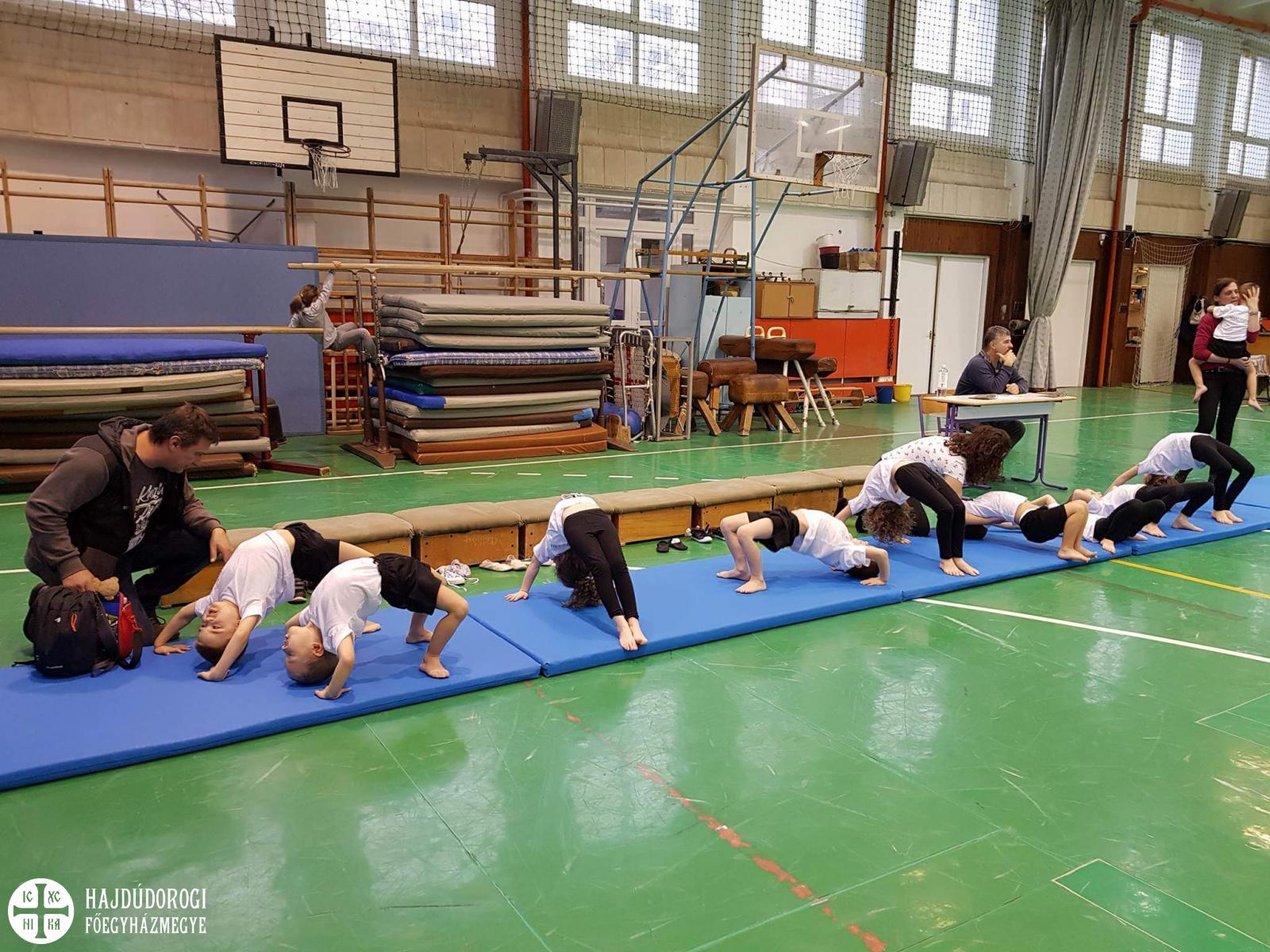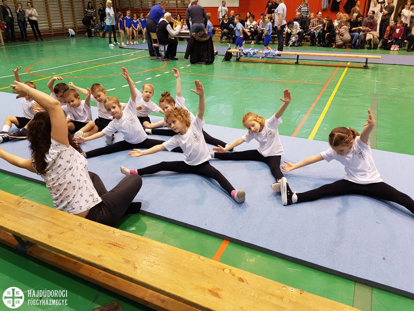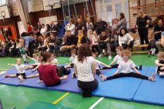 A verseny napján mindenki izgatottan érkezett az iskolába. A gyermekek az egységes tornaruhájukba átöltöztek és a tornaterembe kicsit bemelegítettünk. A versenyszámokat külön értékelték, forgószínpad szerűen. A gyakorlatok előtt volt 3 percük szintén bemelegítésre. Fokozott önuralommal, koncentrációval és figyelemmel végezték a feladatokat. Minden helyszínen nagyon jól teljesítettek.