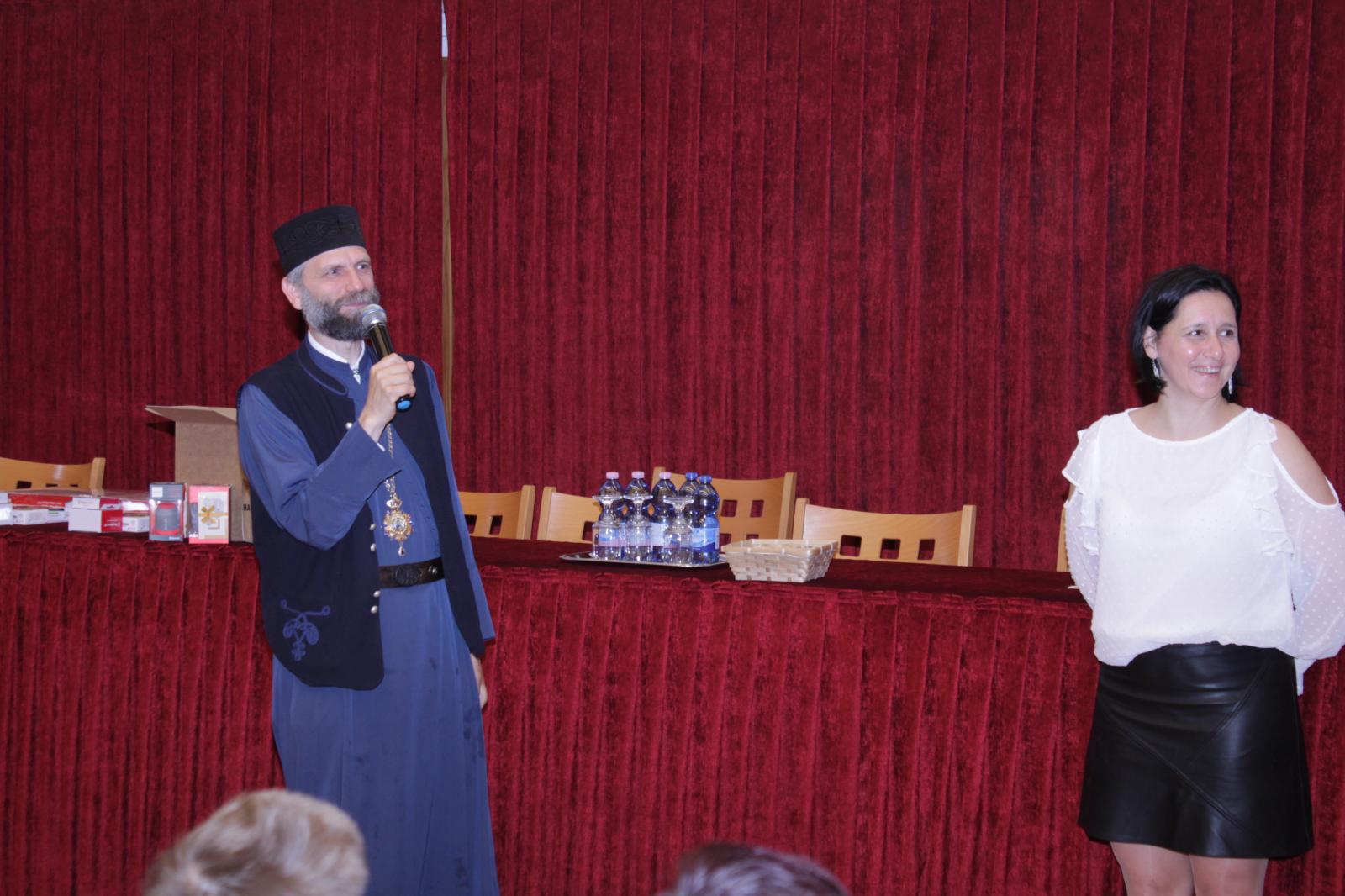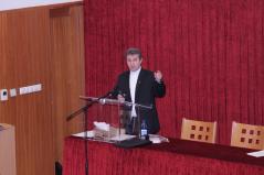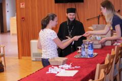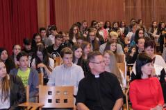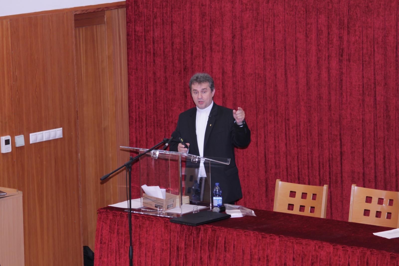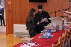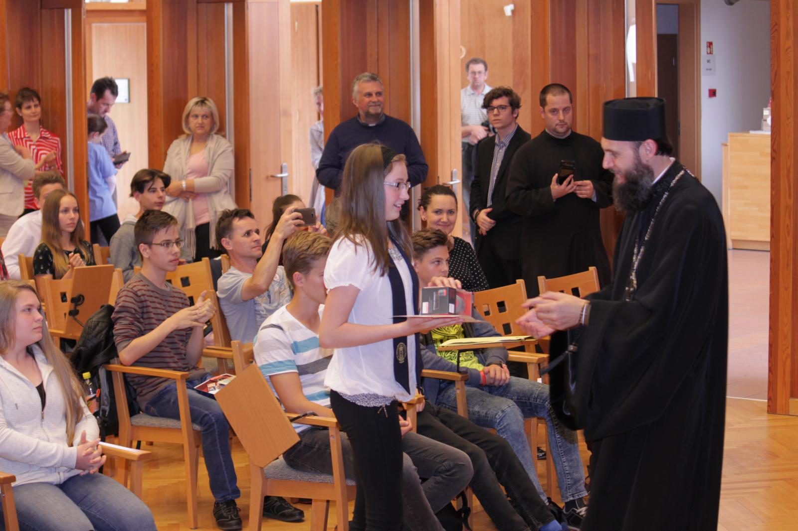 A döntő feladatlapjának megírása utána Dr. Papp Miklós tanszékvezető főiskolai tanár előadása következett az Isten adományaként kapott tehetségről. A Fülöp érsek-metropolita atya által vezetett imaóra után jött az ebéd, majd a fórum, ahol a diákok kérdéseire válaszolt a metropolita atya.