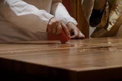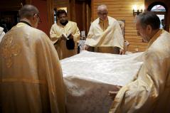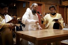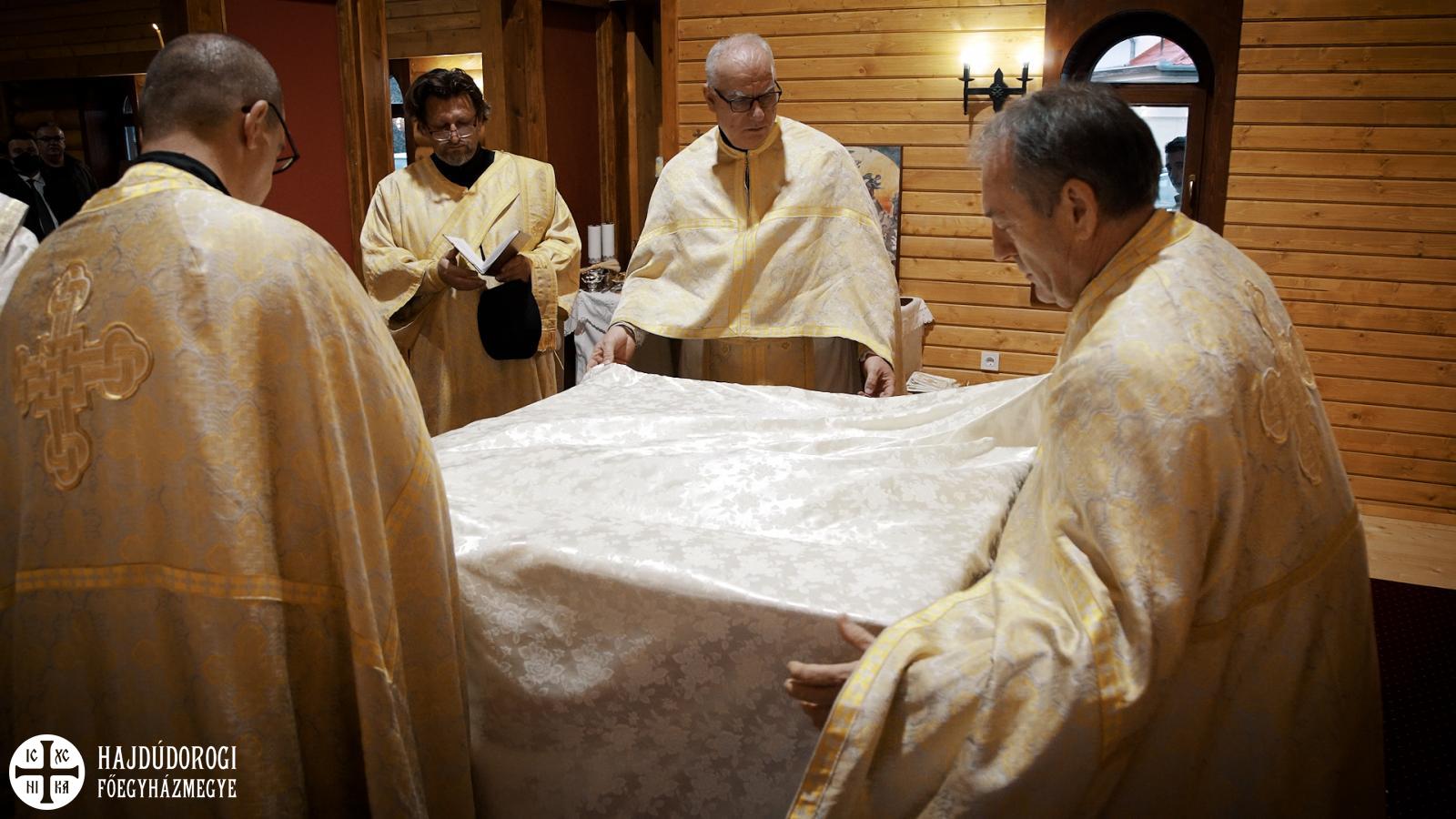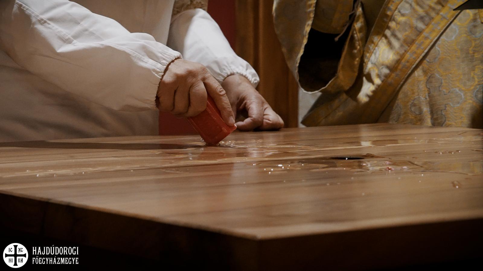 Az oltár fölkenésének és felöltöztetésének szertartásán Fülöp metropolita elsőként a vizet, illetve a bor és rózsavíz keverékét áldotta meg, végül megszentelt olajjal kente meg az oltárt. A szentelési ceremónia a templom falainak megáldásával ért véget.