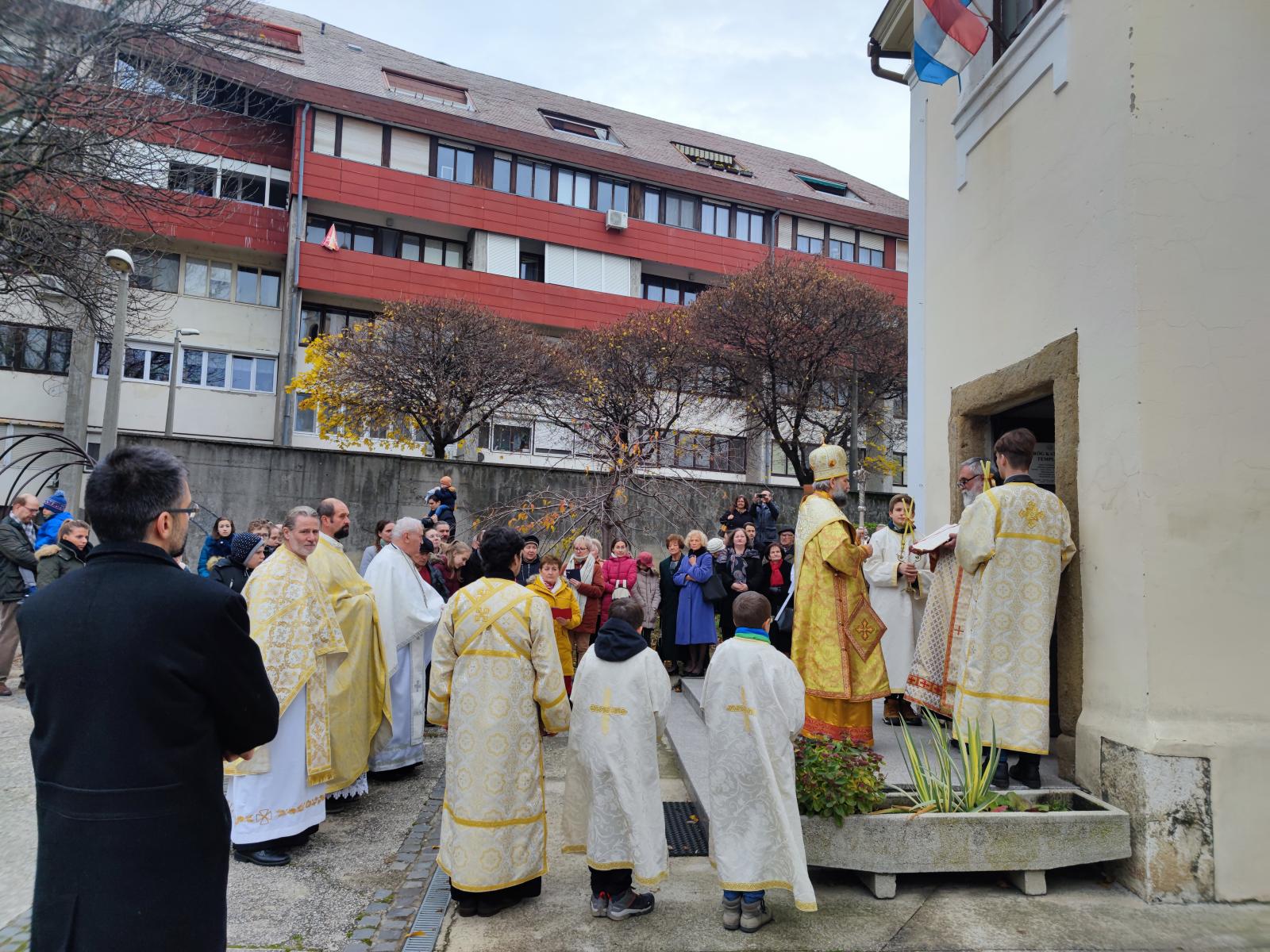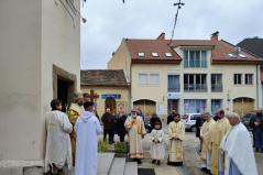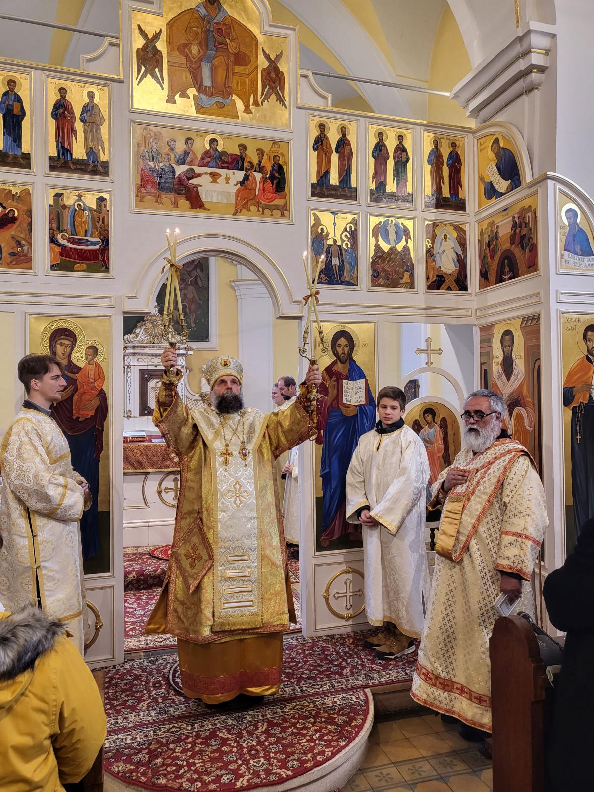Vasárnap reggel Fülöp metropolita atya vezetésével az utrenyét imádkozhattuk végig, majd az ünnepi Szent Liturgia vette kezdetét. Csodálatos, mély és magával ragadó volt a szertartás elején az, ahogyan érsek-metropolita atya nyilvánosan magára öltötte a liturgikus ruhadarabokat szinte a híveket is „beöltöztetve” ezzel a közös imádságra.