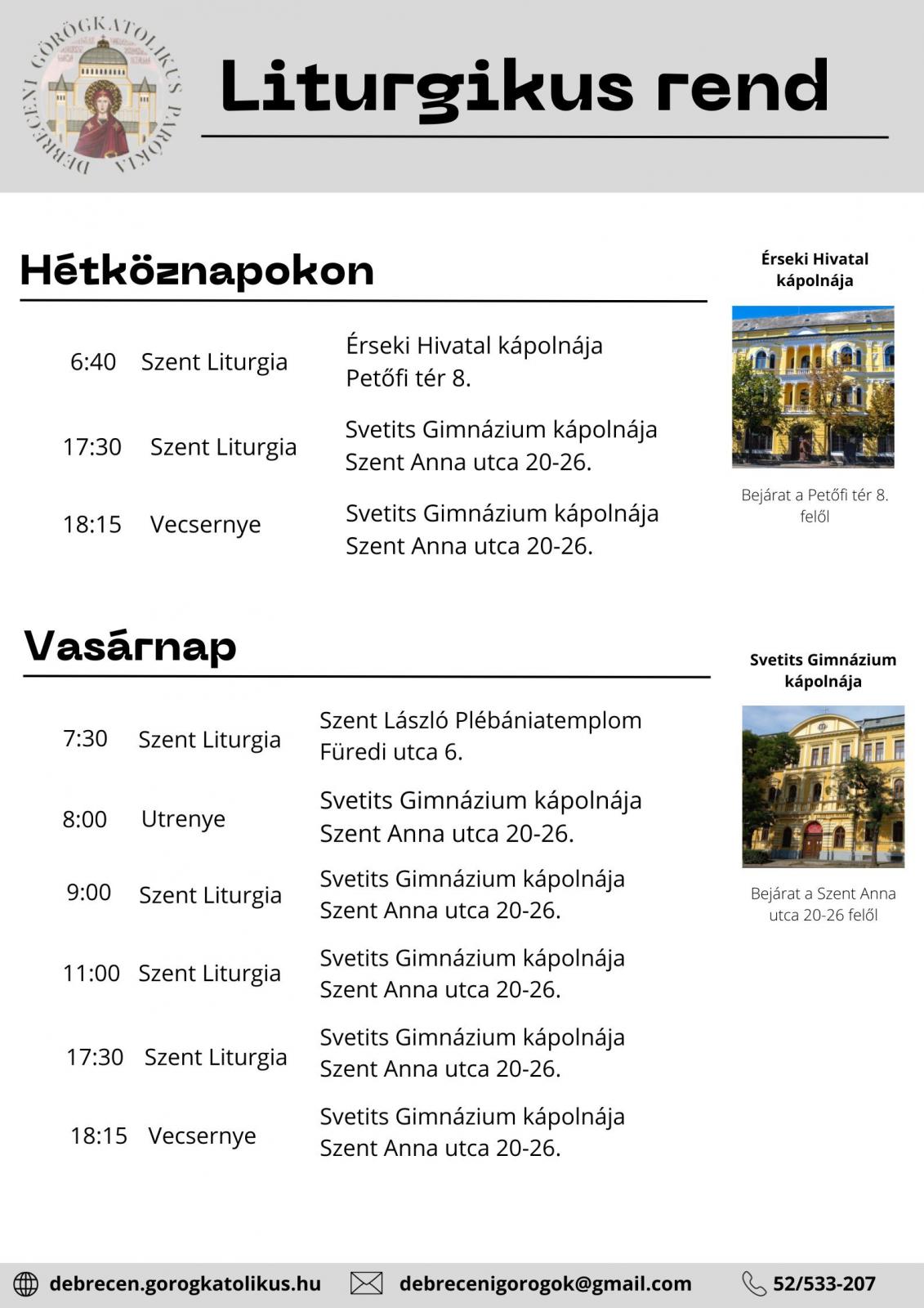 Mint már arról korábban beszámoltunk, kívül-belül megszépül az Attila téri templomunk: Elkezdődik a főszékesegyház felújítása. A Debreceni Görögkatolikus Parókia most közzétette a következő időszakra vonatkozó liturgikus rendet.