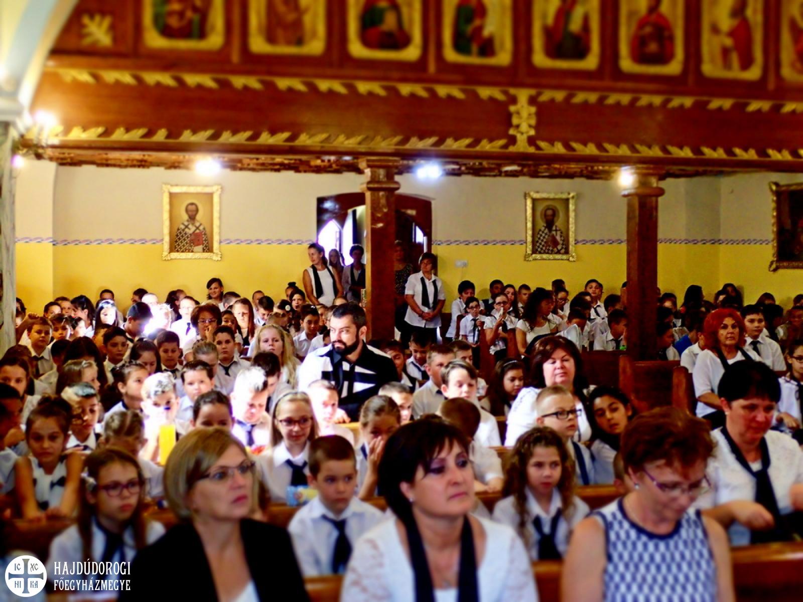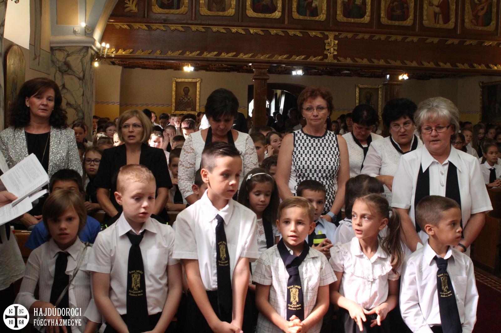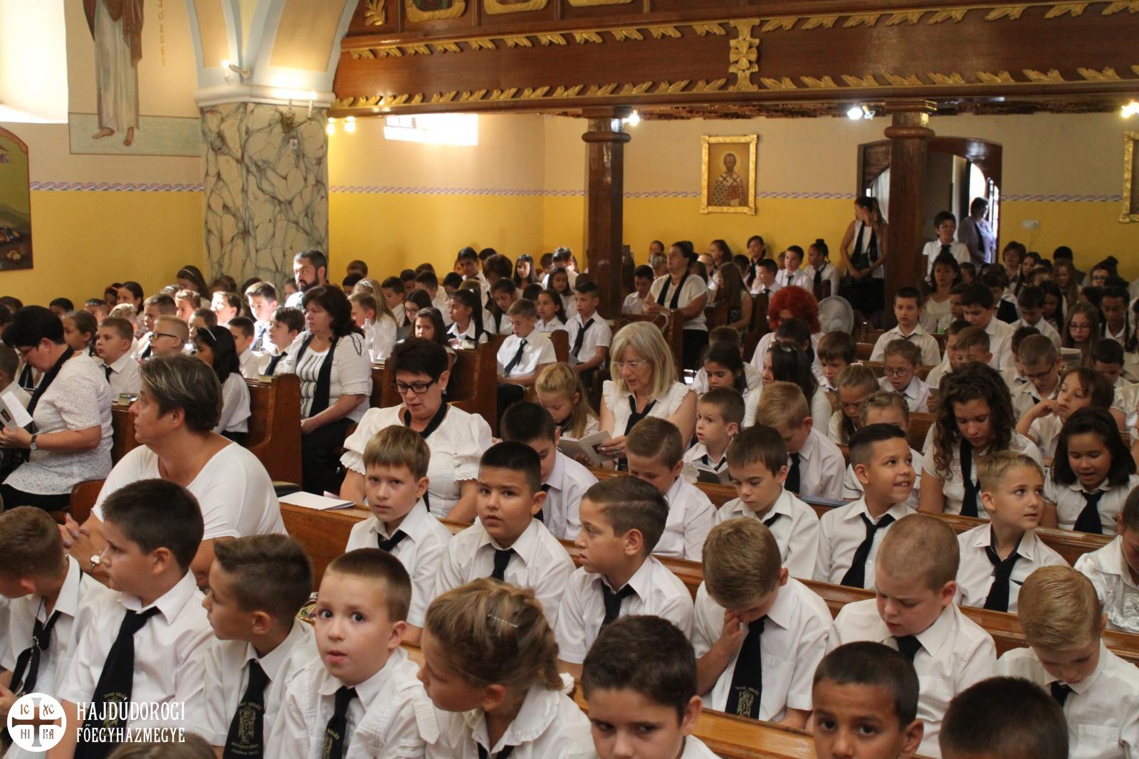 Ahogy arról már beszámoltunk, Nyíradonyban új görögkatolikus óvoda nyílik, szeptembertől 60 gyerekkel és két csoporttal indul a tanév. Emellett természetesen a Szent Mihály Görögkatolikus Általános Iskolában is megkezdődött az újesztendő. Az idei évnyitót a nyíradonyi görögkatolikus templomban tartották, az eseményt megtisztelte jelenlétével Kocsis Fülöp metropolita, Kondásné Erdei Mária, polgármester asszony és dr. Verdes Jánosné, a Járási Hivatal vezetője is.