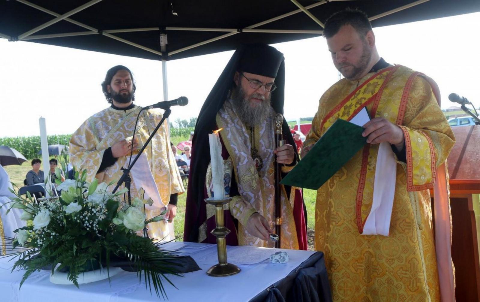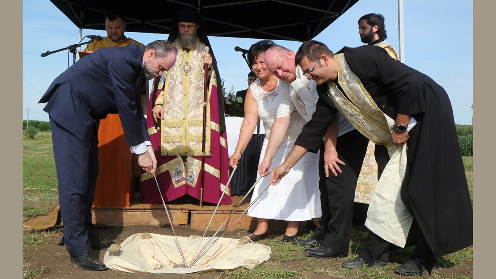 A templom alapkövét Orosz Atanáz püspök szentelte meg. „Szent Péter és Pál ünnepén világosan látjuk, mit jelent a kétezer éve lerakott szikla, és a szívünkben, közösségünkben is meglévő szikla.” – mondta a homíliában a püspök, folytatva a tanítást a bibliai okos emberről, aki sziklára építette házát, amely meg is maradt; „Jézus tanítása az a szikla, amely lehetővé teszi a maradandóságot ebben a folyton változó világban. Péter lett a megtestesítője a szikla alapnak, és azóta is rá építve működik az Anyaszentegyház. Ebben az egyházban élünk és hiszünk mi is. Jézus Krisztus tanítására, Péter apostol szikla alapjára kezdjük mi is a templomépítést. Fennmaradásunk záloga az ehhez való ragaszkodás, az a fajta közösségépítés, amely szilárd alapokon épül, és ezért maradandó, időt álló közösséget jelent.”