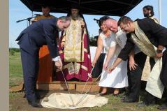 A főpásztor megköszönte az alapítványi kuratórium fáradozását, mellyel „alulról jövő” kezdeményezésként templomépítést terveztek. „Egyházunk hagyománya szerint is, mindig az apostolutód döntése alapján kezdődhet, folytatódhat a templomépítés. Ma összeér ez az alulról és felülről jövő erővonal. Reméljük, hogy sokak számára ez a templom a Gondviseléstől érkező védelmet fogja jelenteni. Hiszünk benne, ahogy a kő kőre épül, az itt élő közösség tagjai is egyre szebben, egyre jobban kapcsolódnak majd egymáshoz, egymáshoz csiszolódnak, hogy egészen egybeillő épületet képezzenek, "hiszen az Isten temploma ti vagytok” – idézett a korintusiakhoz írott első levélből Atanáz püspök.