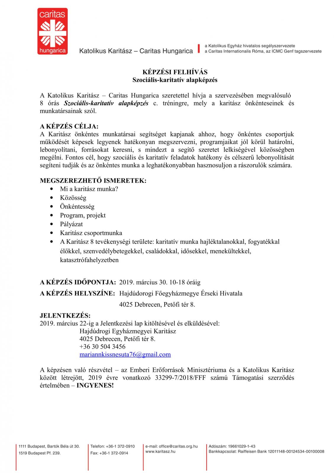 Újabb képzést szervez önkénteseknek a Hajdúdorogi Főegyházmegyei Karitász