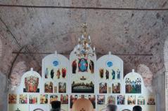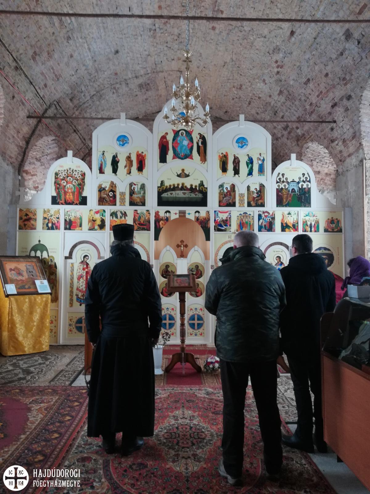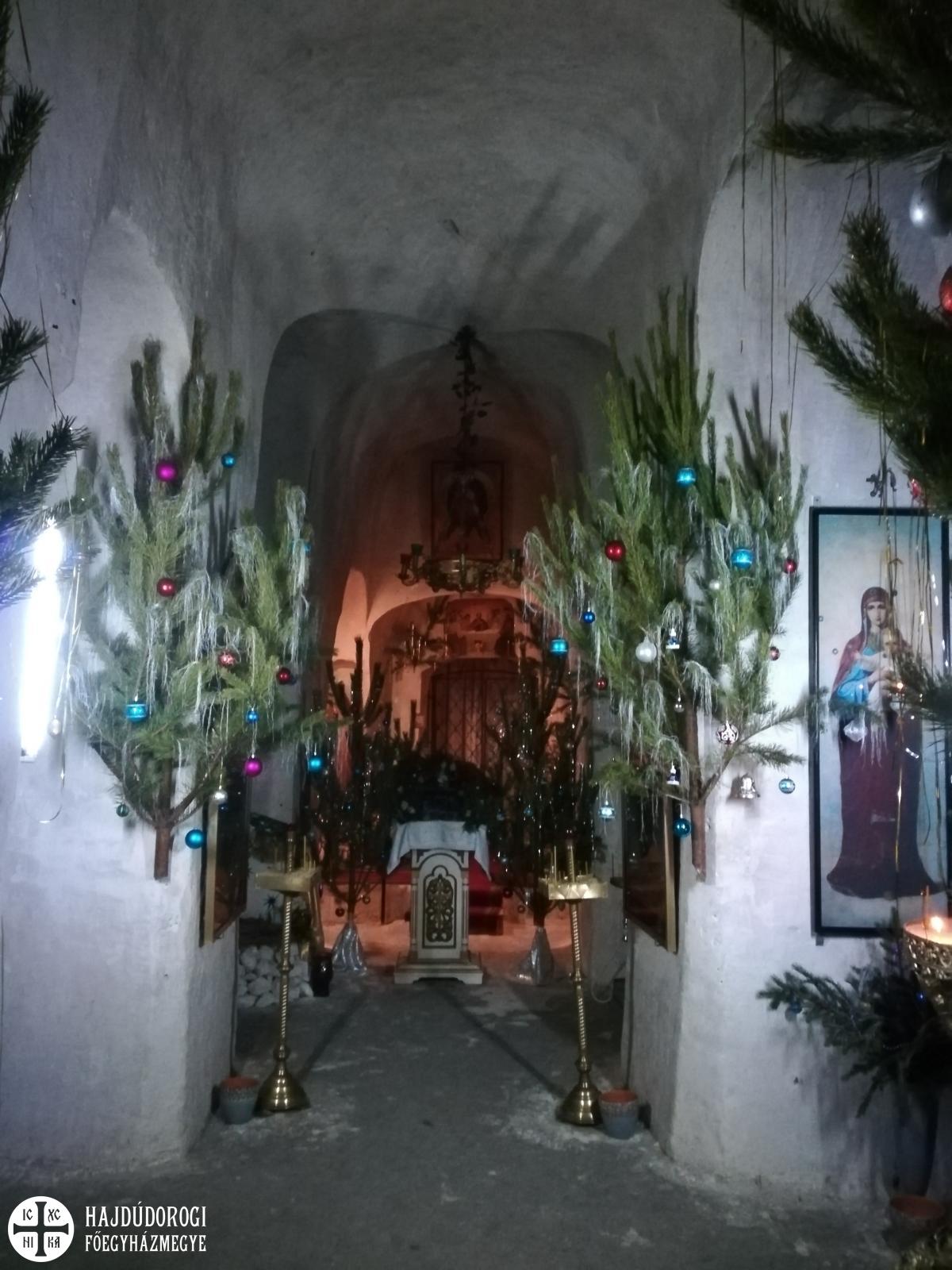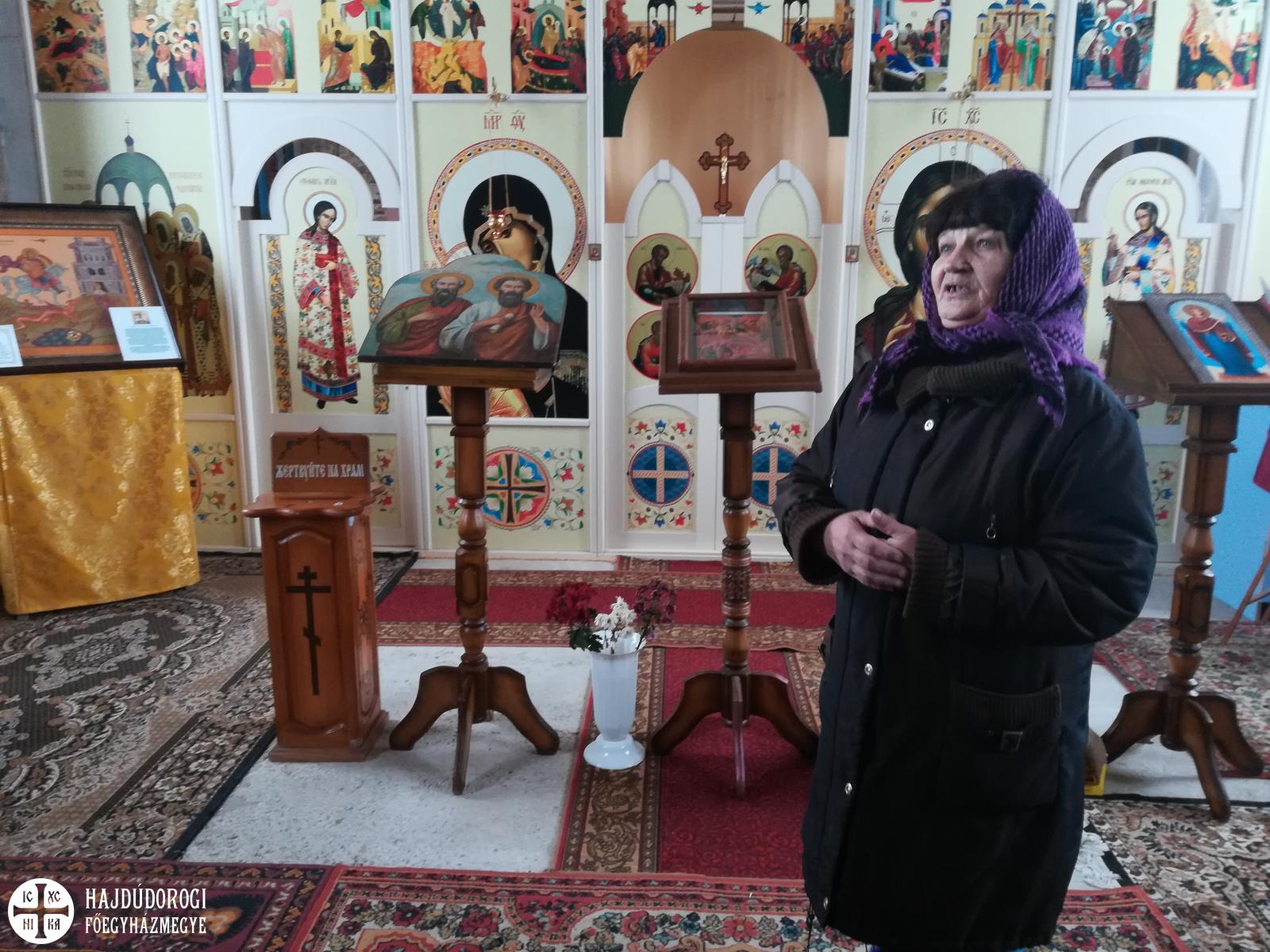 Gyalog kellett leereszkedni a hatalmas hóban a mély völgybe, amelynek alján megbújt a monostor. Szépen felújított templomában a karácsony ünnepkörében lévén annak ünnepi tropárját énekeltük el, majd Alekszij atyát, az igument kerestük, aki elvileg már várt minket. Sajnos azonban az időjárási viszonyok miatt még nem érkezett vissza a monostorba, ezért egy fiatal szerzetesnővér mutatta meg a monostor fölött magasodó sziklába vájt templomot és ahhoz tartozó folyosórendszert. A szűk alagutak remetecellákat és kápolnákat kötöttek össze. A nővér ekkor tudta meg, hogy görögkatolikusok vagyunk. Kis híján kiesett a kezéből a világítás gyanánt használt gyertya, és zavarában angolul kezdett motyogni. „Mindig angolul beszélek, ha sokkot kapok” – mondta. Elbúcsúzáskor már nem is kért áldást a görögkatolikus metropolitától – mint tette a találkozás pillanatában.