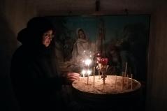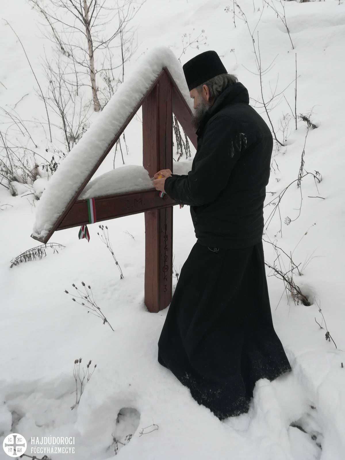 Innen a kosztamarovói női monostorba vezetett Fülöp atya útja. A szakadatlan havazás nehezítette ugyan az utat, de vecsernyére éppen megérkeztünk. A sziklás dombok ölelésében fekvő, fenyvessel övezett monostor igazi tündérvilágnak hatott a hatalmasra hízott hóban. A szertartás után a hegy sziklájába vájt remetecellákat és kápolnákat néztük meg. A nővérek készségesen mesélték el a hagyomány szerint ezer évnél is régebbi sziklatemplomok történetét. Építészeti stílusuk azt a feltételezést támasztják alá, hogy eredetileg talán görög szerzetesek telepedtek meg itt, és ők vájták ki a kápolnákat és az első cellákat. Az évszázadok folyamán jöttek-mentek a remeték, szerzetesek, szentéletű atyák, a falu népe. A jövőbelátó Péter szentéletű atya a harmincas években többször homokhalmokat formázott az út porában. Ezzel a titokzatos tettével jelezte előre, hogy hamarosan temetetlen holttestek halmai csúfítják majd ezt a vidéket. Bizony, ez a mi magyar honvédjeinkre is vonatkozott.