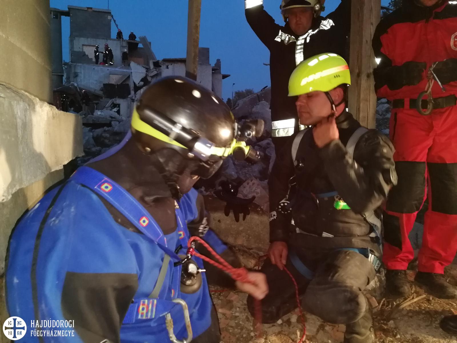 Az egyik összedőlt épület első és második emeletére alpintechnikai módszerrel jutottak be a mentőcsoport tagjai. Az egészségügyi szakemberek ellátták a bajbajutottakat, majd az alpinisták a kötélpálya segítségével lejutatták a sérülteket. A búvárok a robbanás következtében vízzel elárasztott alagsorban dolgoztak, ahol a vízutánpótlást kellett megakadályozniuk, ennek érdekében a meghibásodott tolózárat felderítés után kicserélték. A csekély látási viszonyok mellett is pontosan dolgoztak, feladatukat teljesítették. A szürkület sem tudta a mentőcsoport kedvét szegni. A lendület végig vitte őket, a több órás megerőltető munka során. A romváros és a közeli erdős rész területeit feltárták, az eltűnteket megtalálták.