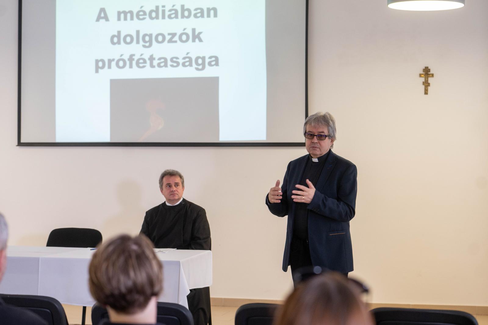 Papp Miklós görögkatolikus pap, morálteológus „A médiában dolgozók prófétasága” című előadásában ahhoz kaptak a jelenlévők segítséget, mit kell tenniük ahhoz, hogy növekedjen az örömhír befogadásának és továbbadásának készsége. Másszóval milyen változást, megújulást kíván a médiában dolgozó keresztényektől a szekularizált-, posztmodern-, információs társadalom emberei felé irányuló újságírói kommunikáció?