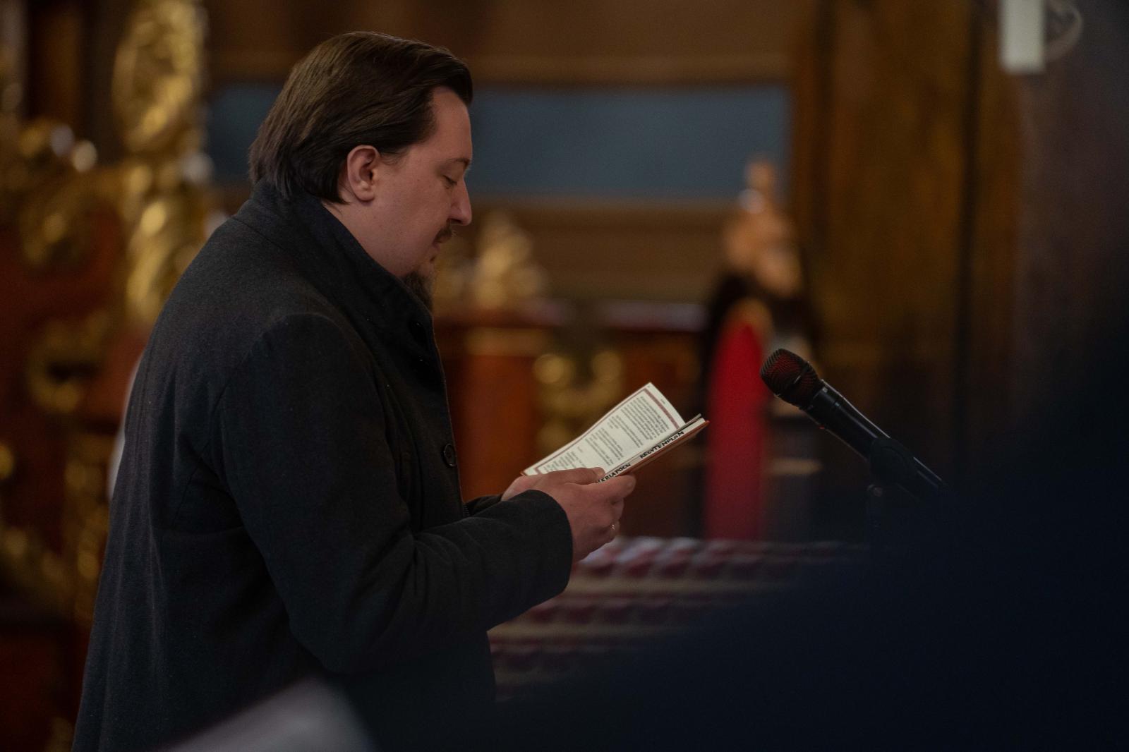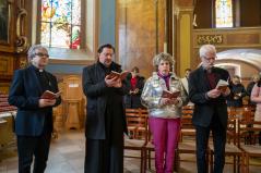 A program imaórával kezdődött a kegytemplomban, amelynek különlegességét az adta, hogy a vendégek olvasták fel a zsoltárokat. A szertartás végén Fülöp metropolita köszöntötte a találkozó résztvevőit, és egyúttal arra kérte őket, hogy „mindig csak örömhírt közöljenek, közvetítsenek”. Az Isten titkának a kifürkészése jóval bonyolultabb annál, minthogy egyszerűen rávághatnánk, nincs Isten, vagy ellenkezőleg, mindenre Jézus a válasz. A válaszokat épp annyira nehéz megtalálni, mint a hírek mögött rejtőző örömhírt. Mert minden mélyén ott van az Isten, és minden hírben meg lehet találni az örömhírt. A legszörnyűbb dologban is jelen van Isten üzenete, s a hívő újságírók feladata, hogy ezt közvetítsék az emberek felé. „Nyitogassuk az emberek szemét! Nem kell magyarázkodni, ha az igazságot keressük, hiszen ott van az Isten, ott van az örömhír. Tartózkodjunk a féligazságoktól, amiket sokkal könnyebb megtalálni! Az igazságkeresés egyúttal istenkeresés is. Ekkor az Isten átalakítja a munkánkat, és apostolokká tesz minket. Kérem az Istent, hogy igazság hírnökeit sokszorosan áldja meg!” – zárta gondolatait Fülöp atya.